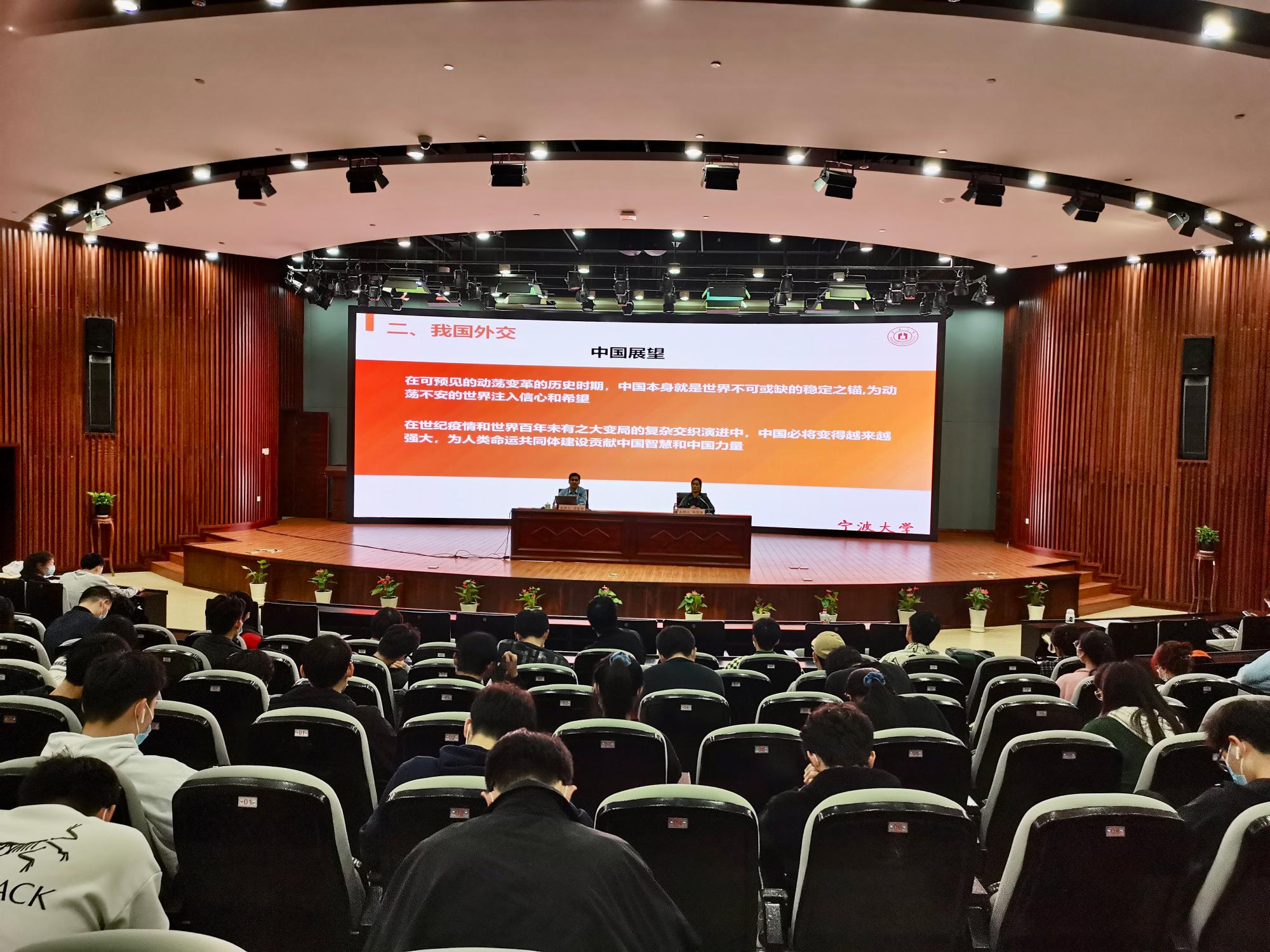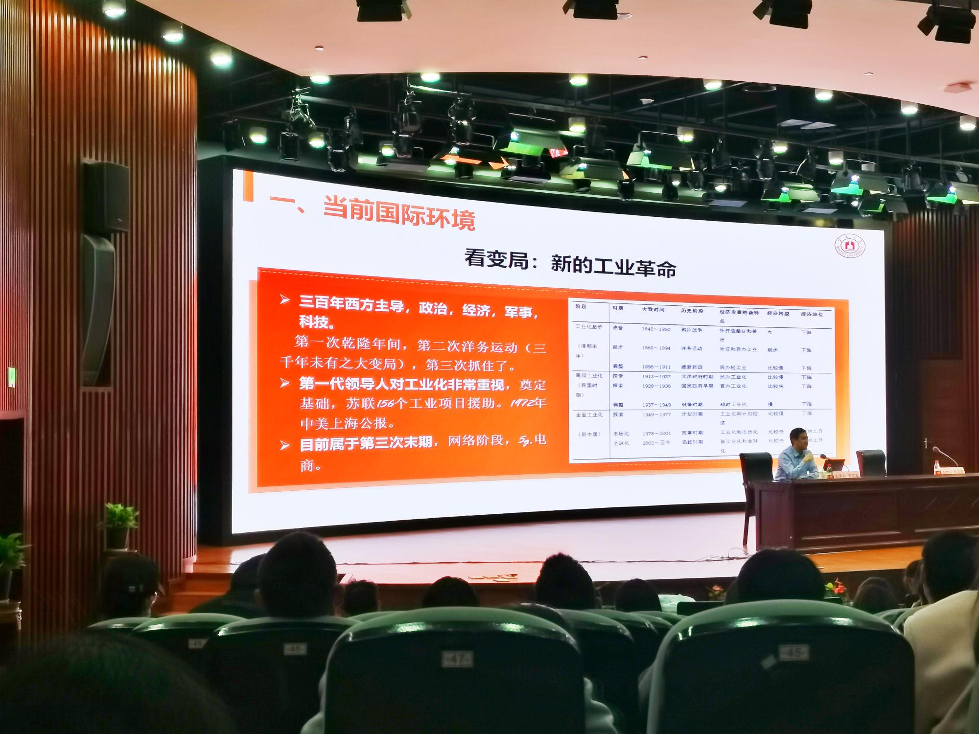 11月25日下午,副校级领导宋富军教授为17live 师生主讲“形势与政策”课,主题为“当前国际环境和我国外交”,共260余名师生参加,17live 党委副书记韩雯琛主持。