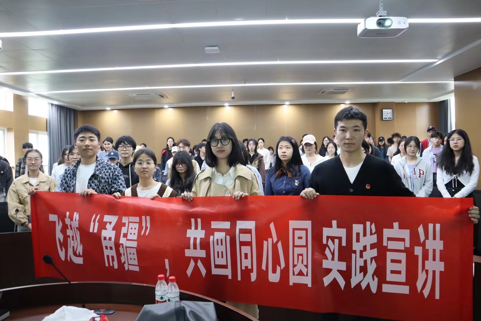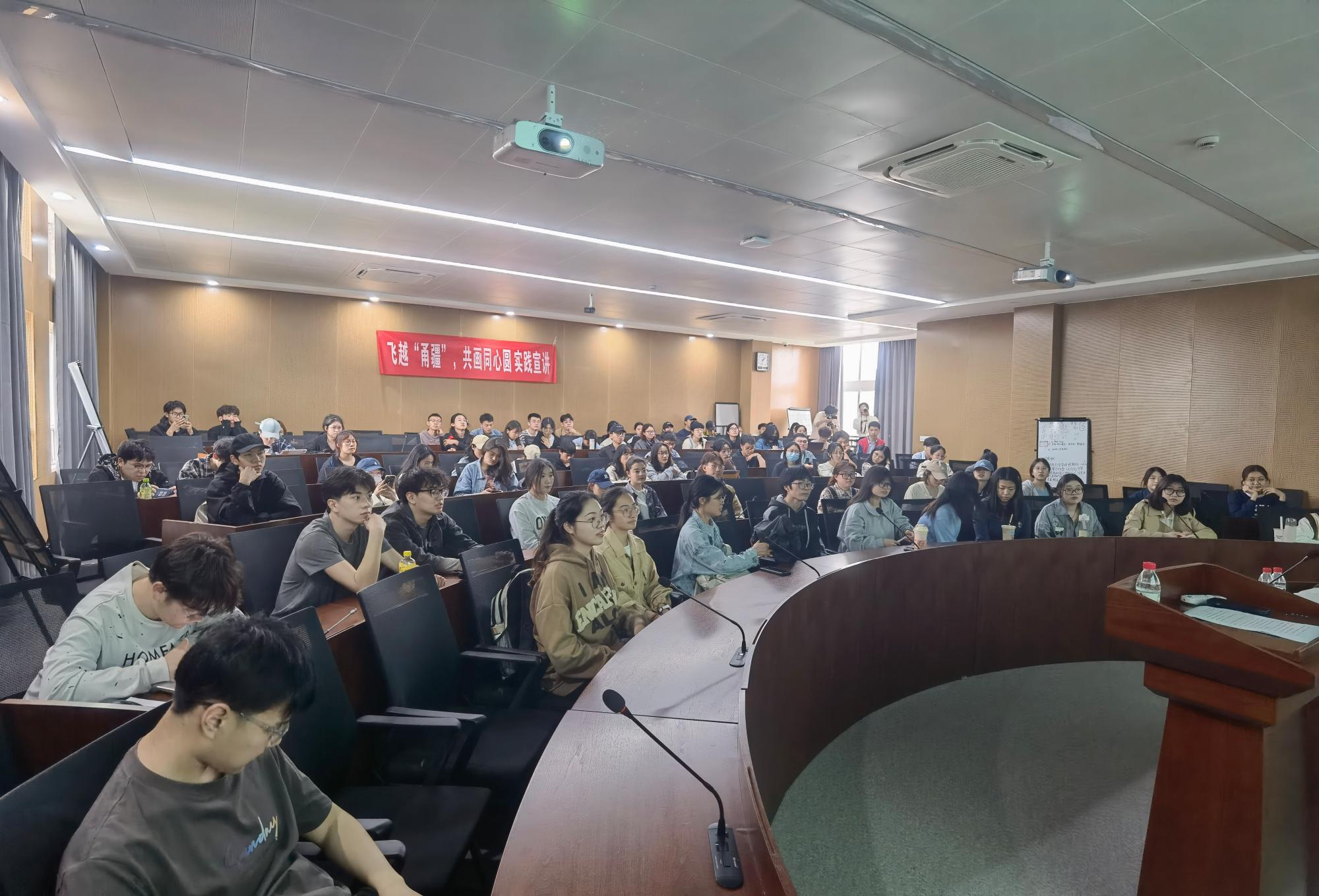 讲座结束时,所有同学共同喊出“‘飞越’甬疆,共画同心圆”口号,并拍照留念。讲座结束后,不少同学纷纷表示,讲座内容充实有趣,激发了他们想要去大美新疆看一看的兴趣!