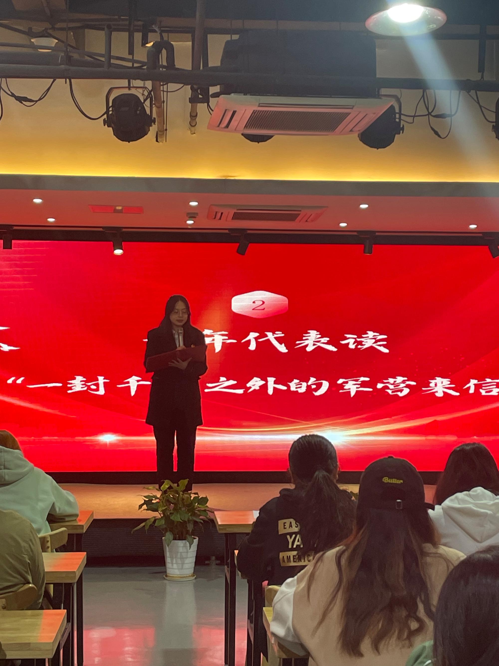 随后,青年代表胡升越诵读了“一封千里之外的军营来信”。这封信件,来自于17live 18级信管专业的李凡,她于2022年应征入伍,成为了一名女兵。信中,李凡讲述了自己在部队的生活,除去种种艰苦训练,她印象最深的是晨跑看到的绚烂日出。在李凡看来,西部计划是一个风口、一块跳板、一个绝佳的契机,可以让广大青年在实现梦想的同时实现自身的价值。李凡学姐说道:“清晨的日光正和煦、风中有晨露的清新,我最终成为了年少时自己最想成为的样子,无愧于自己、无愧于家国!”