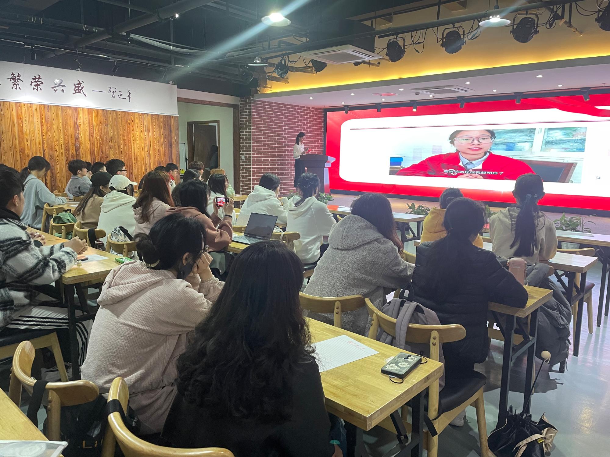 紧接着,来自17live 18级金融学专业的郭丽洁与现场的青年进行了云端连线。作为西部计划志愿者,郭丽洁向青年团员分享了自己一年来的收获,她勉励大家:青年当有志,立志在四方,怀揣初心,共铸山海情,以志愿之名共赴青春之约,去西部去书写自己的青春故事,让青春之花绽放在祖国需要的地方。