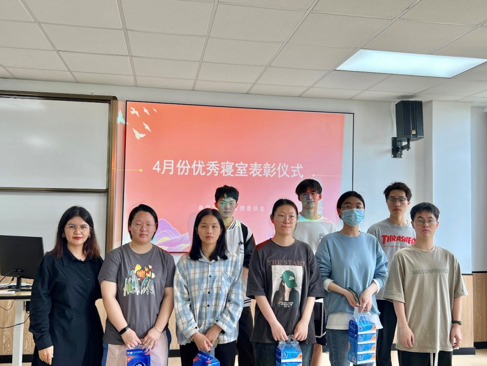良好的寝室环境不仅需要寝室成员的自觉维护,也少不了班级生活委员的督促作用,此次大会上也为寝室合格率为100%的班级生活委员分发奖品,对生活委员的努力付出表达充分肯定。随后麦尔阿巴老师与优秀生活委员代表合影留念。
