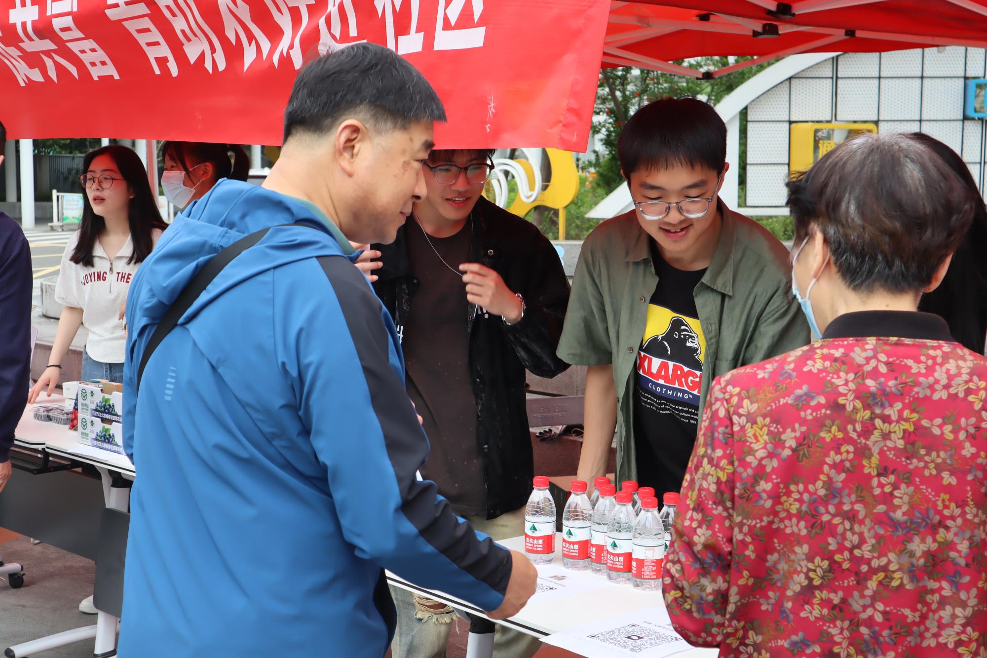 在当日的活动中,同学们联动线上线下,用摆摊活动、网络直销等方式帮助农户宣传农产品。 他们用专业所学为农特产品制定专属营销方案,吸引了社区居民前来了解和购买。许多居民纷纷购买了这些优质农产品,并对活动的组织给予了高度的赞扬和好评。