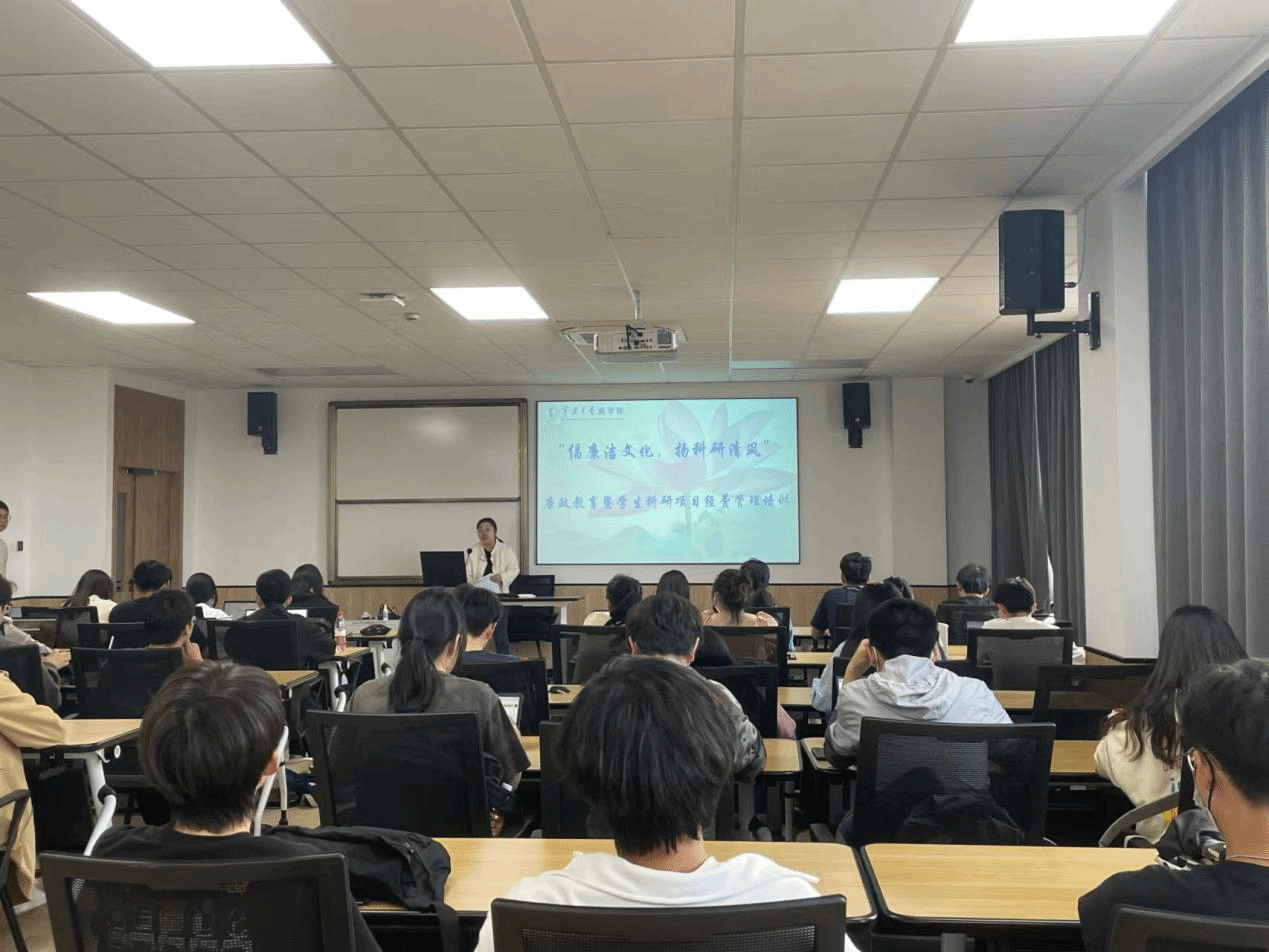 首先,由辅导员朱文洁对不同的科研项目进行介绍,并说明时间节点和结题要求,提醒同学们注意时间安排。随后,由辅导员钟冬冬开展项目经费管理培训,培训内容主要包括科研经费使用的管理办法、经费报销的时间节点、报销流程及相关注意事项。通过讲解,提高大家对科研经费管理的认识。最后,他对各科研团队提出要求,务必严格遵守相关规范和要求,强调诚信、求真、务实是我们应当遵守的底线。