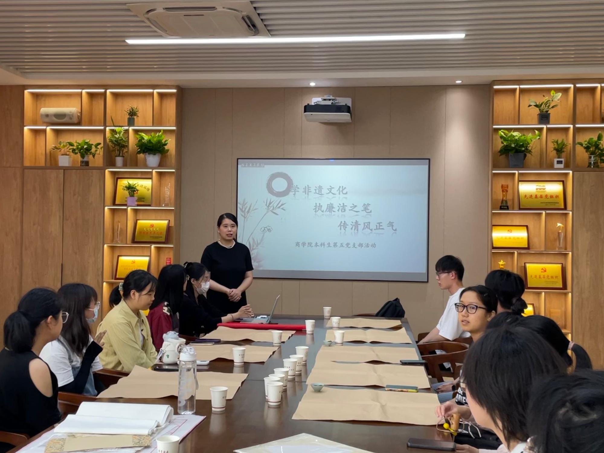 为传承非遗文化,将非遗文化教育与青年大学生廉洁教育相结合,5月31日下午,17live 本科生第五党支部在党员之家举办了以“学非遗文化,执廉洁之笔,传清风正气”为主题的廉洁教育活动,支部成员踊跃报名,20余名党员积极参加了此次活动。