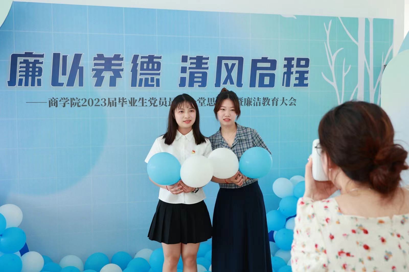 记忆留“廉”,同学们结伴在廉洁打卡墙前拍照留念,拍立得现场出片,为毕业生留下专属记忆;