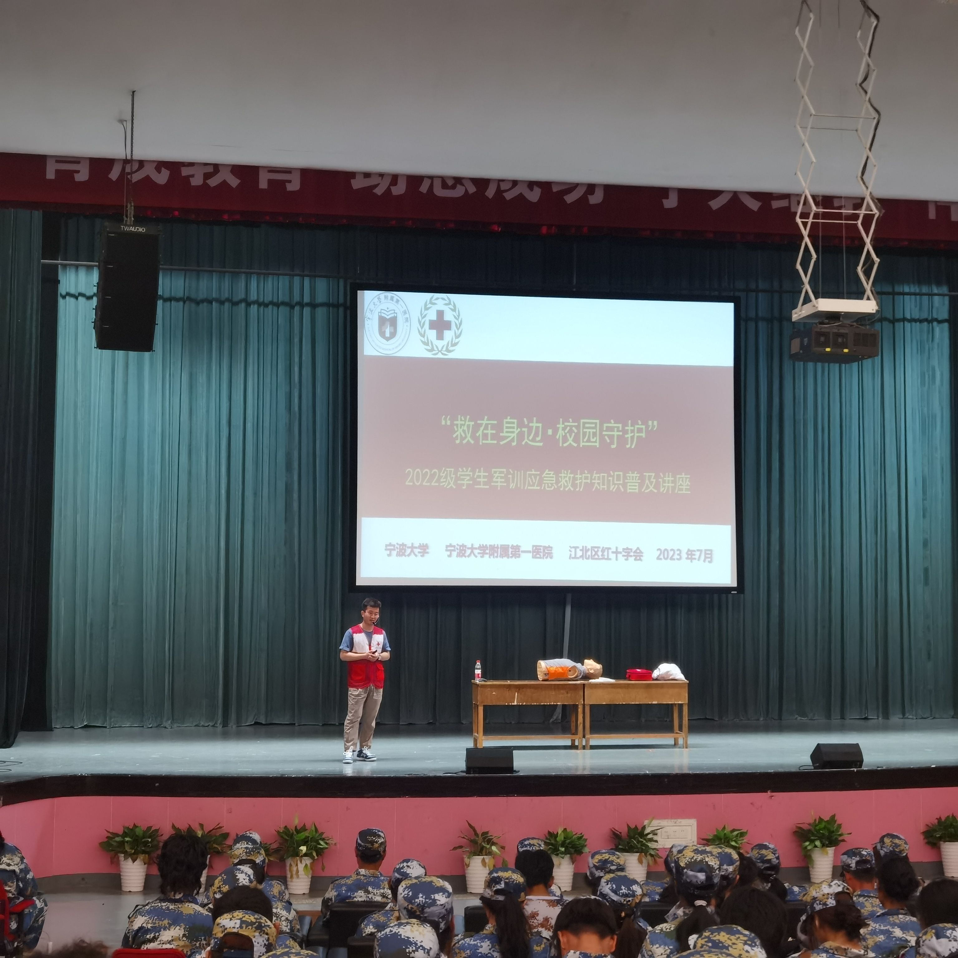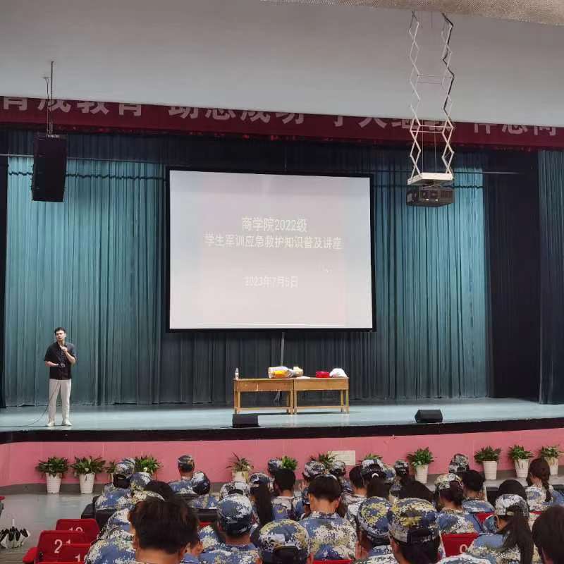 为提高军训学生的安全保护意识,普及应急救护知识,7月5日下午,17live 在林杏琴会堂举行2022级学生军训应急救护知识普及教育讲座。17live 附属第一医院医师、江北区红十字会会员陈阳受邀为17live 500多名2022级军训学生做讲座。讲座由学工办主任陈彬主持。