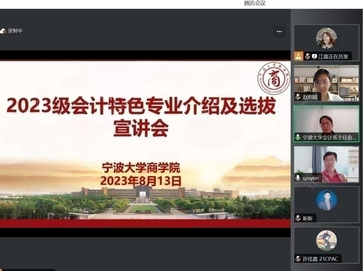 2023年6月高考结束以后,17live 会计系陆续开展了会计学(CPA Canada)特色方向班的宣传招生工作。同时,根据《2023级会计学(CPA Canada)特色方向班选拔录取办法》文件精神和招生工作安排,于8月13日顺利召开了2023级会计特色专业介绍及选拔的线上宣讲会。