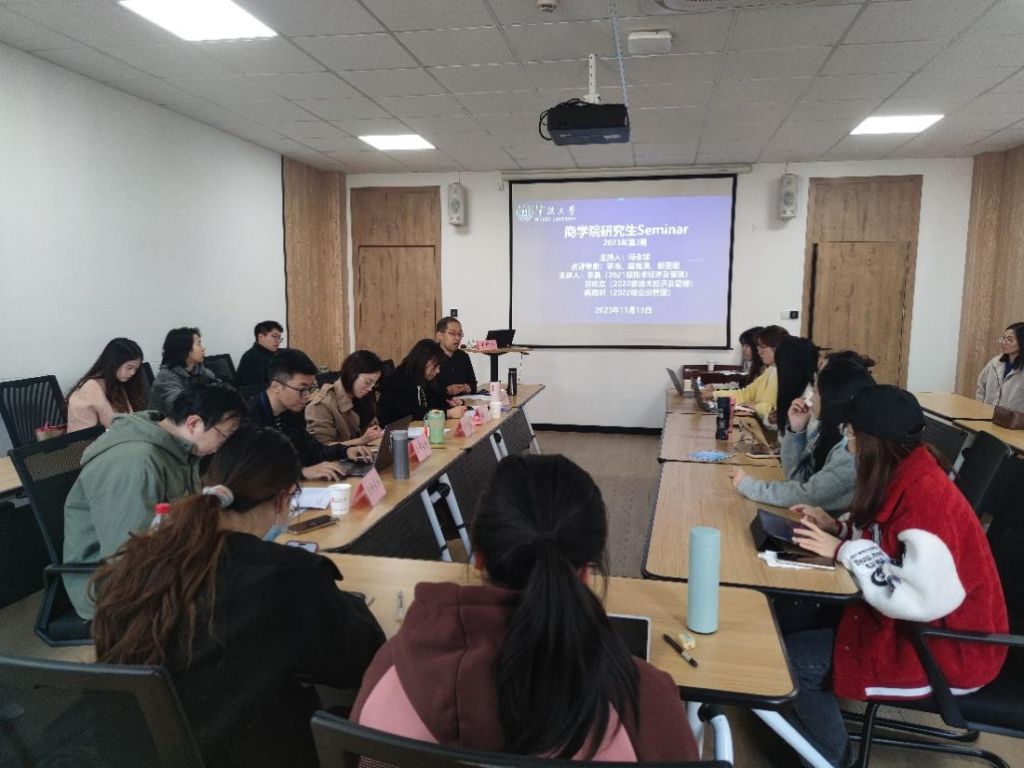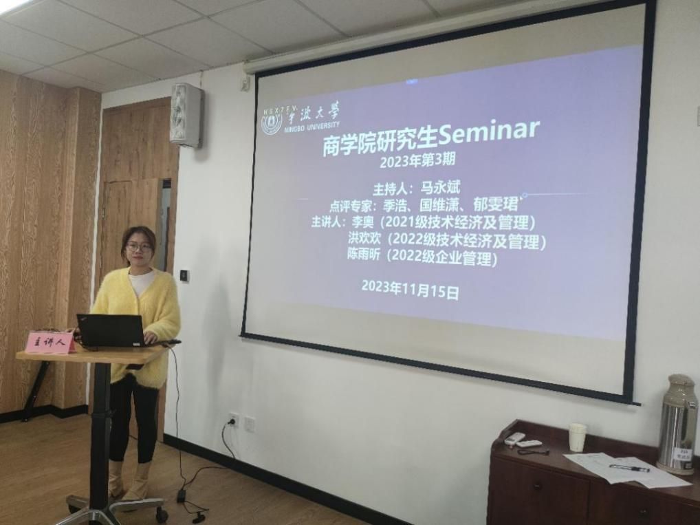 11月15日下午,17live 2023年第3期研究生Seminar在17live 316会议室举行。本期Seminar主持人是企业管理学位点负责人马永斌老师,点评专家为季浩老师、国维潇老师、张祺瑞老师和郁雯珺老师。主讲人是2021级技术经济及管理的李奥、2022级技术经济及管理的洪欢欢和2022级企业管理的陈雨昕。