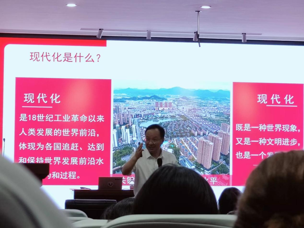 郑礼平通过讲解现代化的含义引入主题,指出现代化是一个集大成的过程,具体表现为心灵、技巧、管理妙、环境好的严整多层的集成过程。随后,郑礼平从中国式现代化的形成与发展过程、中国式现代化的重大原则、中国式现代化的重要意义三个方面,带领我们深入理解中国式现代化。在此过程中,郑礼平运用毛泽东撰写的《论十大关系》、邓小平提出的社会主义本质等伟人的事例,阐释了中国式现代化的本质特征和发展目标、五个坚持的原则以及三个重大的意义。最后,郑礼平从了解中国七十四年来的伟大成就和帮助更好地认清当今的国际局势两个方面总结了理解中国式现代化的必要性。