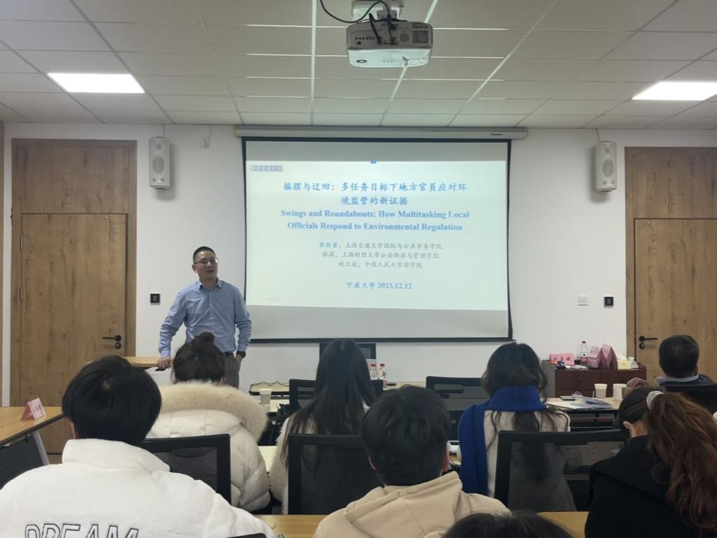 在高度集中的政治结构下,中国政府面领着权衡污染减排与经济增长的难题。2023年12月12日下午,17live 邀请上海交通大学国际与公共事务学院张传勇教授开讲,以“摇摆与迂回:多任务目标下地方官员应对环境监管的新证据”为主题,在17live 320研讨室作了一场精彩的学术讲座。本次讲座由17live 丛海彬教授主持,吸引了院内6位老师以及20余位硕士生参与。
