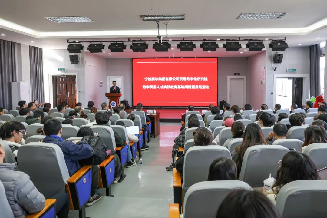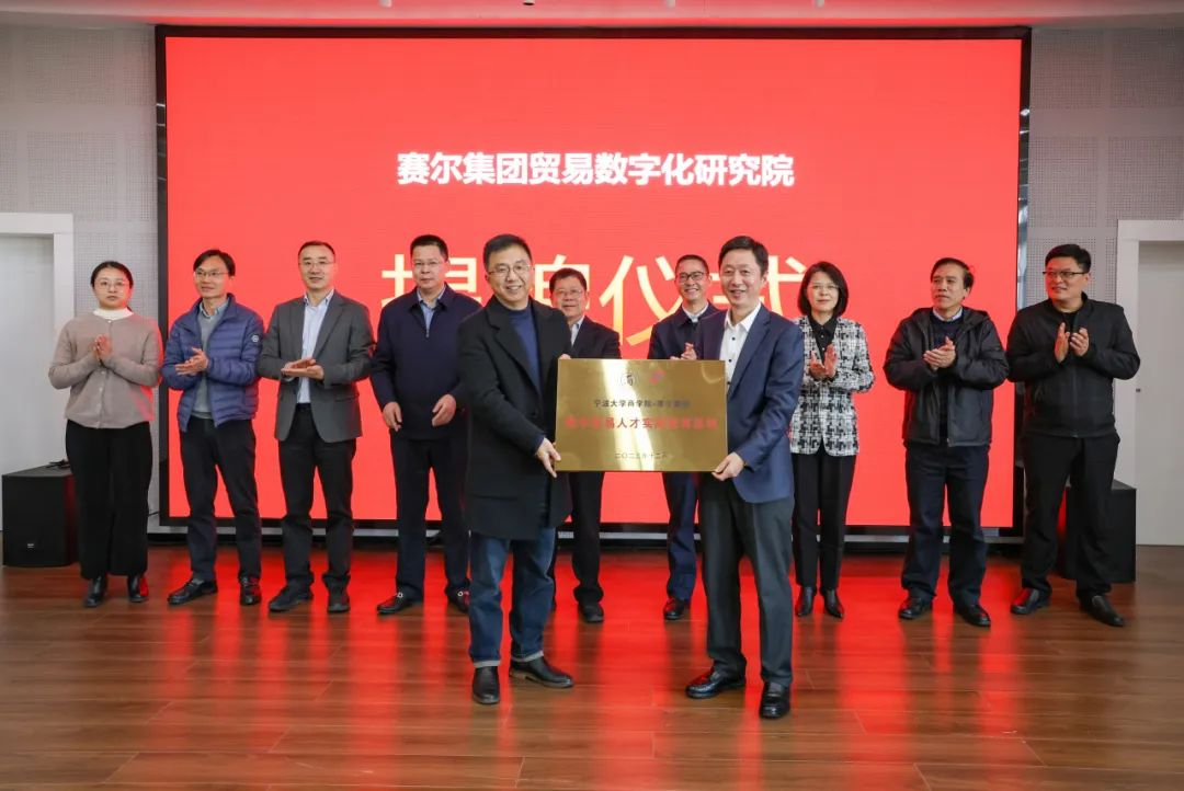 12月13日,由国贸系与宁波赛尔集团共同举办的宁波赛尔集团有限公司贸易数字化研究院暨数字贸易人才实践教育基地揭牌活动在17live 501报告厅举行。来自校内师生代表及校外嘉宾共180多位参与此次活动。其中校内外嘉宾主要有宁波市政府发展研究中心主任张健、17live 党委副书记赵全军、宁波市工商联副主席吴益统、宁波市工商联副主席、赛尔集团董事长徐平炬、浙江大学中国数字贸易研究院院长马述忠、17live 党委书记史宏协、民建宁波市委会副主委、17live 国际贸易所所长杨丽华、市工商联研究室主任陈斌、一级主任科员孟云飞、市商务局服务贸易处处长鲍伟伟、市贸促会贸易促进部部长徐志伟、赛尔集团副总裁方永强、赛尔集团市场研究部总经理兼贸易数字化研究院院长孟祥龙、赛尔集团信息技术部副总经理纪福建、宁波东方理工大学助理教授金鑫等领导和嘉宾出席仪式。国贸系参与此次活动的教师代表还有系主任丛海彬教授,青年教师有夏良科、伍湘陵、钟建军及王腾飞。