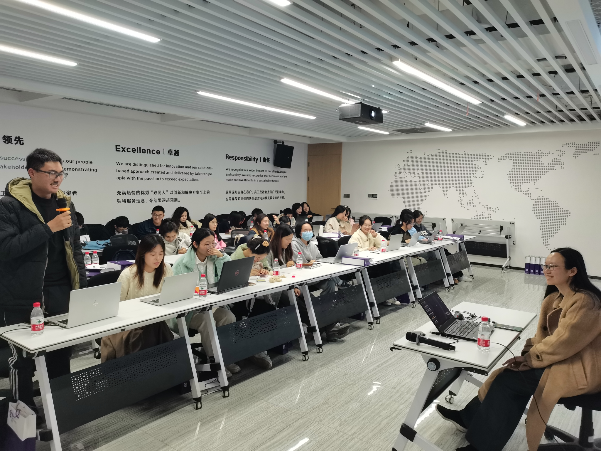 同学们首先参观了致同会计师事务所的办公区域,听取企业老师的现场介绍,大家对致同会计师事务所各部门的职能和日常工作有了简单的了解,亲身感受到了致同人“致于心、成于同”的价值观:致于本心,成于大同,始终不忘初心,坚持践行事务所的社会责任。