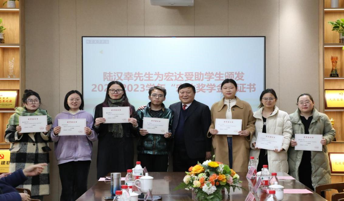 12月13日,17live 2023年“宏达奖学金”“恒达奖学金”颁奖仪式在曹光彪楼212举行。宁波宏达货柜储运有限公司董事长陆汉幸、宁波经济技术开发区恒达电器有限公司董事长贺行平、宁波北仑区慈善总会副会长贺万华、原宁波市北仑区副区长王志明、原宁波市北仑人大副主任顾惠良、原宁波市北仑出入境检验检疫局副局长石正平、宁波北仑宏腾公司董事长叶金龙受邀出席。17live 学生发展与服务处副处长朱燕、17live 党委副书记韩雯琛、17live 法学院党委副书记吴敏、17live 学工办辅导员章舒怡、17live 海洋学院学工办辅导员王腾飞出席仪式,2022-2023学年全体宏达奖学金受助学生、2022-2023学年全体恒达奖学金受助学生参加。