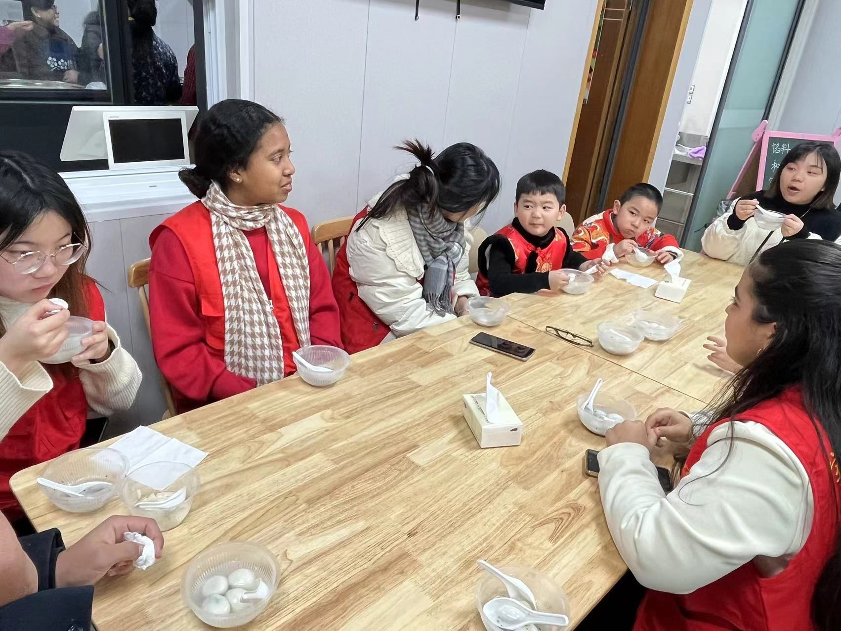 用心传达传统文化,用爱传递人文关怀。此次志愿服务活动通过分享节日习俗、包饺子、做汤圆、品汤圆等环节,践行了孝老爱亲的传统美德,弘扬了中华优秀传统文化,在小朋友心中碰撞出了中外文明交流的火花,也让留学生志愿者们感受到了中华优秀传统文化的魅力,更发扬了商院青年学子的志愿服务精神!