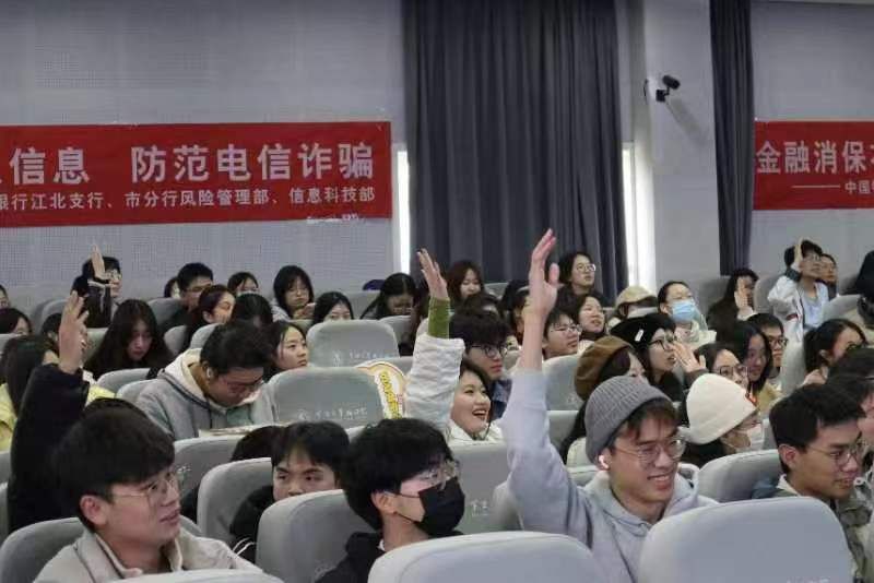 讲座结束后,为检验学生群体对防范电信网络诈骗及个人信息保护等方面金融知识的掌握程度,中行工作人员又针对常见案例进行互动问答,进一步提升了在座各位学生的学习兴趣。