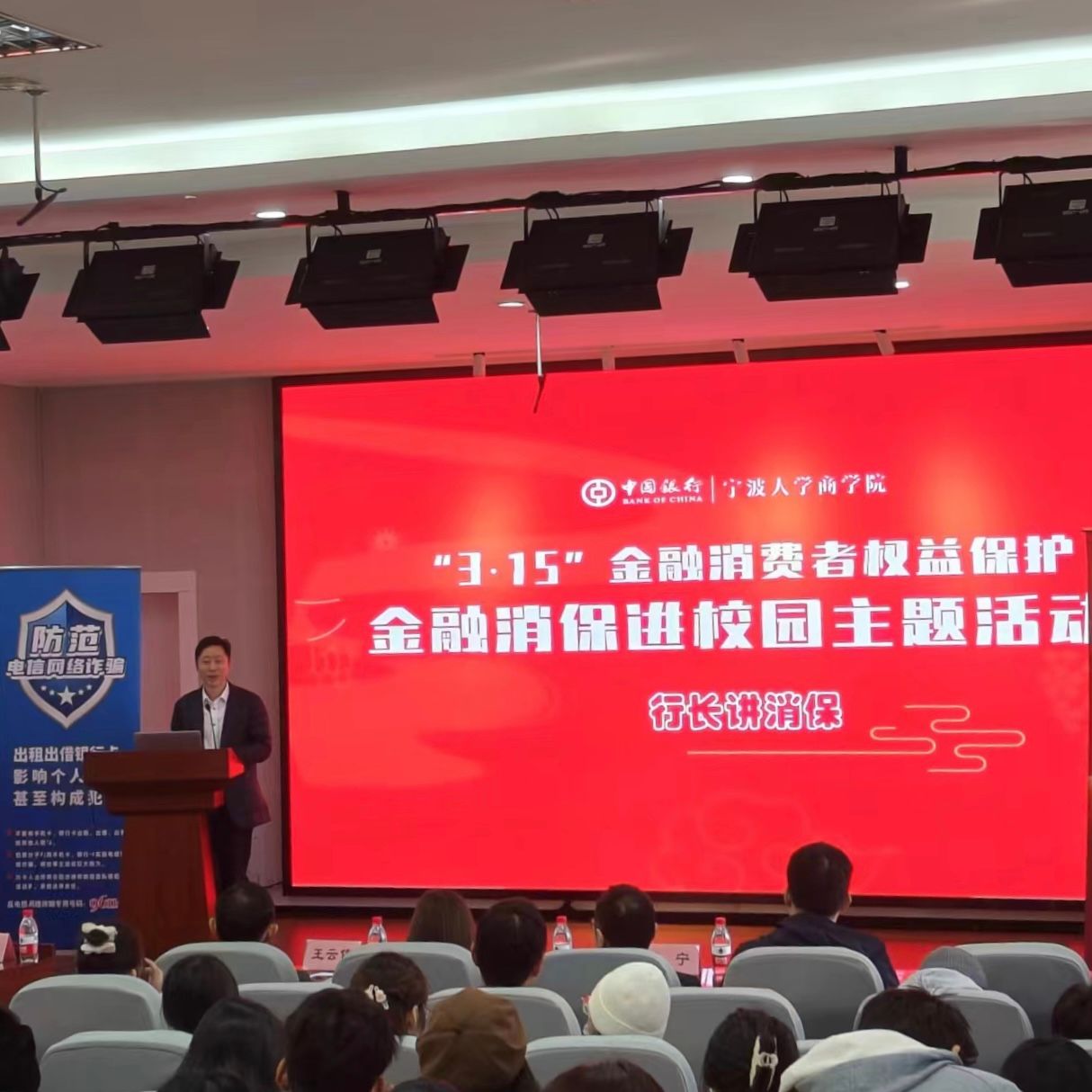 随后,王云伟书记化身“消保宣讲员”为同学们带来 " 金融消保在身边,保障权益防风险 " 主题宣讲。讲座以真实案例为切入点,就在校大学生如何防范电信诈骗、如何保护个人信息、如何树立理性适度消费理念等方面进行了讲解和分享,让大家对运用金融知识维护自身合法权益、防范不法金融活动侵害有了更深入的认识。