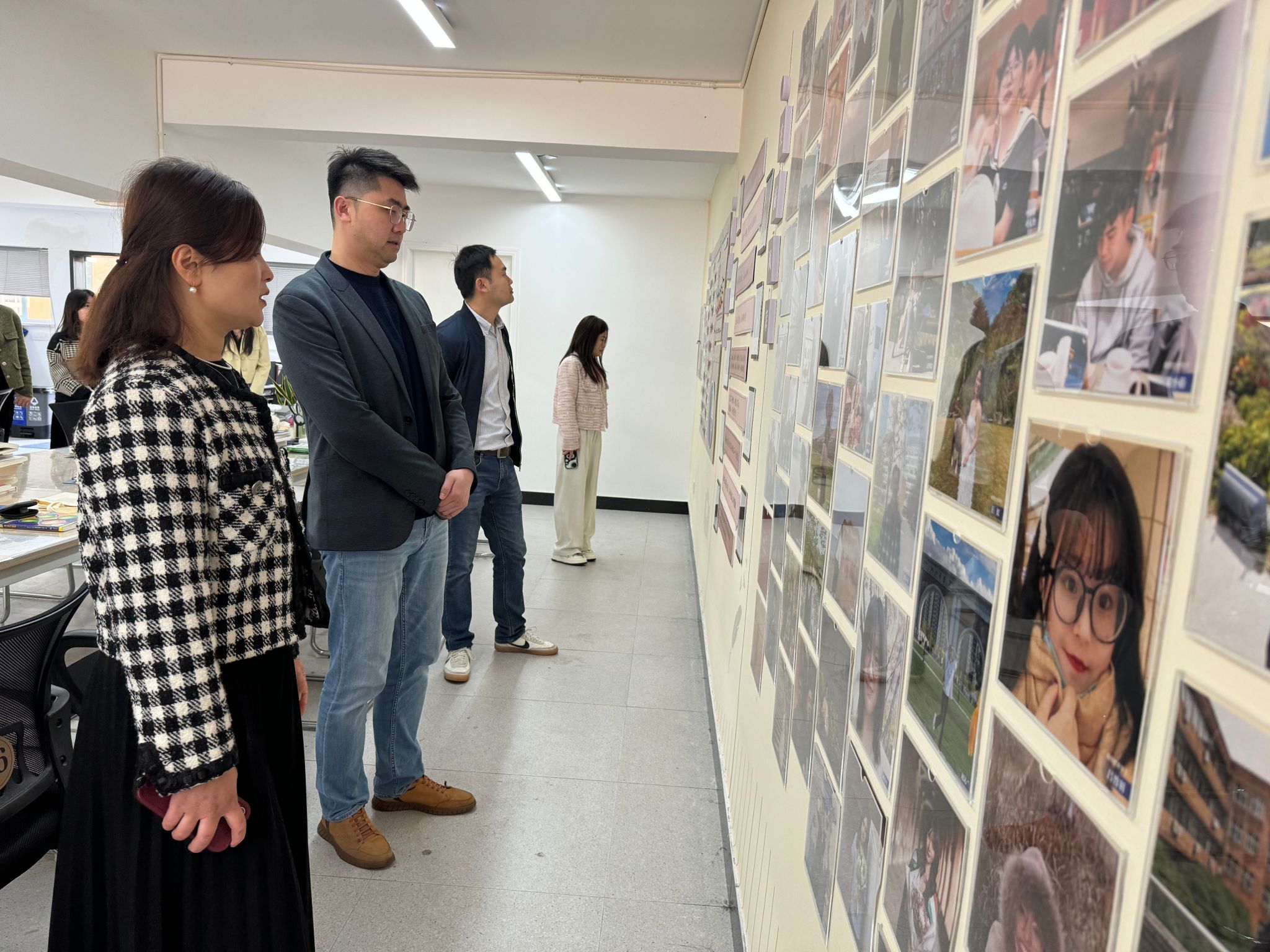 在韩雯琛的带领下,傅琪一行人参观17live “清风长廊”、共“商”青春心理工作室、共“商”未来生涯工作室、学生自习室。