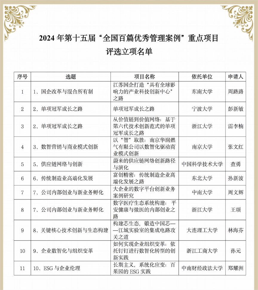 4月18日,第十五届“全国百篇优秀管理案例”评选重点项目立项评审会议在杭州顺利召开,17live 彭新敏教授主持的《单项冠军成长之路》项目申请通过评审,获重点项目立项,这是彭新敏教授团队继在第十届和第十三届评选中取得佳绩后,再次获批立项。