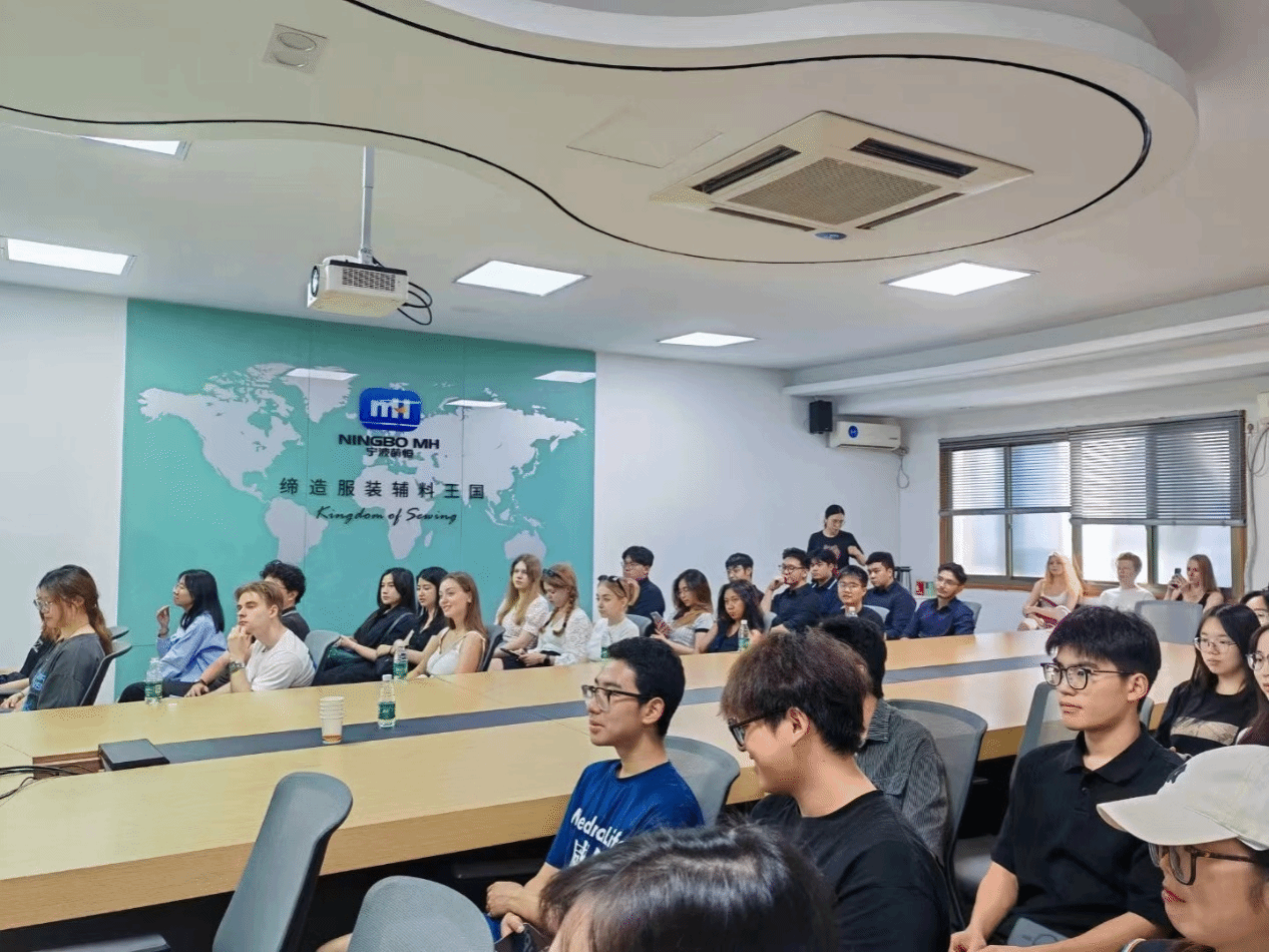 接着,集团工作人员带领师生们前往公司的样品间,详细介绍了公司的主营产品。同学们亲身体验了各种服装辅料、刺绣花边、线类、带类、钮扣类和拉链类产品,深入了解了公司核心产品的优势和特点。