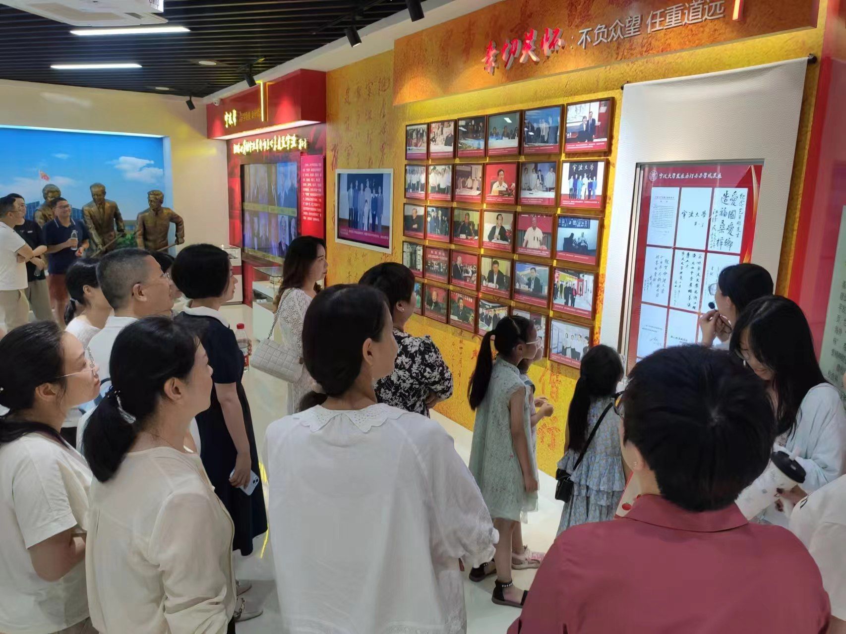 在徐老师的全程陪同下,校友们兴致勃勃地参观了校史馆,感受宁大的成长与辉煌。他们顶着烈日,重游了记忆中的南天门、三角地带,打卡了新的网红地,在千年橄榄树旁、白鹭林中、阳明湖畔、潘天寿建筑与艺术设计学院都留下了创意又喜庆的合影。校友们纷纷表示,今天刚踏进校园的时候,感觉宁大变了很多,楼宇越来越多设备越来越新,环境越来越好。但走近一看,又觉得宁大还是原来的宁大,处处都是熟悉的味道,也仿佛又回到了大学时代。