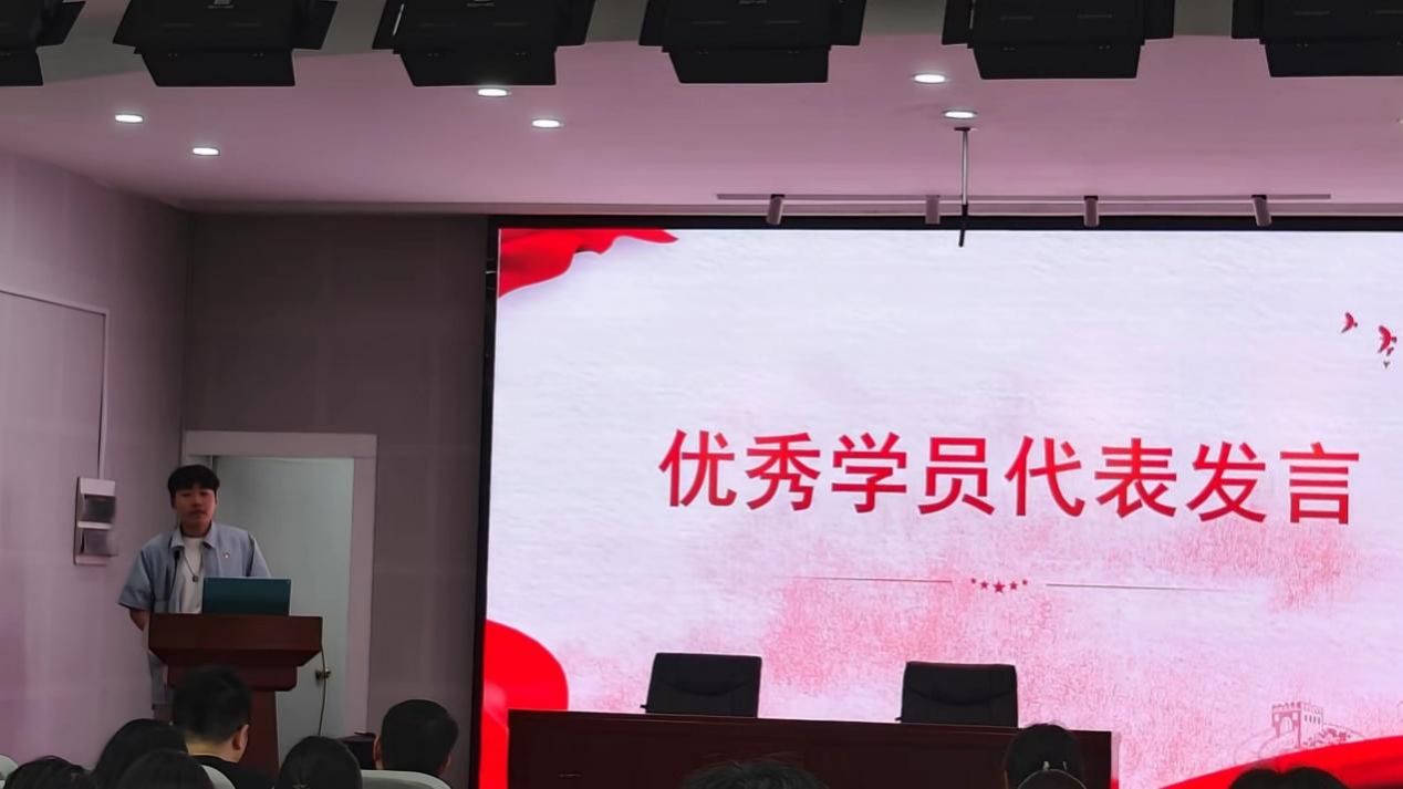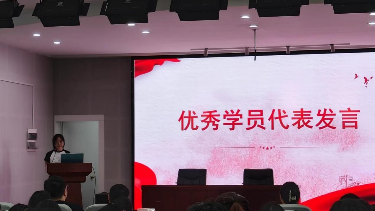 预备党员培训班班长张哲涵,发展对象培训班班长叶树萍,优秀学员张婧、戴秉邦分别上台发言。以“牢记初心使命,争做青年先锋”为题,从党章领航、学习榜样、为国争光、走访清风基地,涵养清廉正气等10余个板块回顾了在分党校的学习之旅,详细介绍了在培训期间的满满收获。他们表示:我们正身处于一个伟大的时代,比历史上任何一个时期都更接近中华民族伟大复兴的目标。更应奋力携手,以永不懈怠的精神状态、永不停滞的前进姿态,让中华民族的伟大复兴在奋斗中梦想成真!
