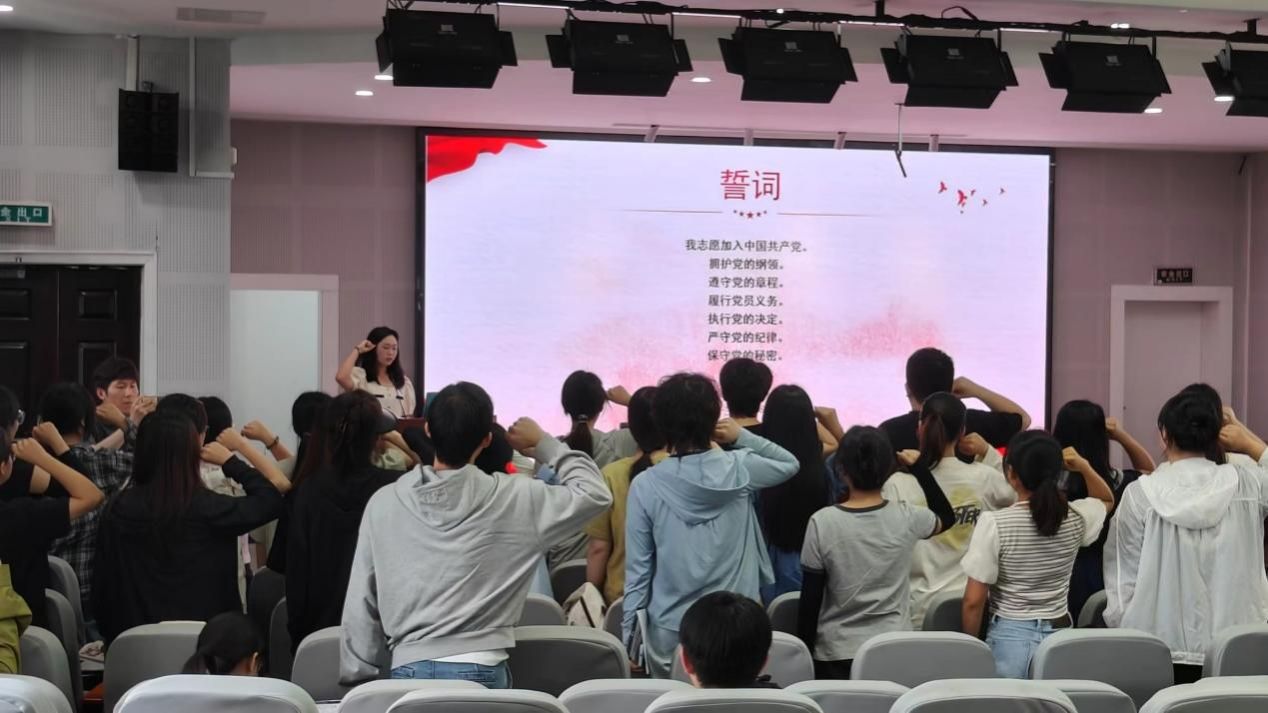 典礼上,预备党员佩戴党徽进行入党宣誓,并签订党员廉洁承诺书。