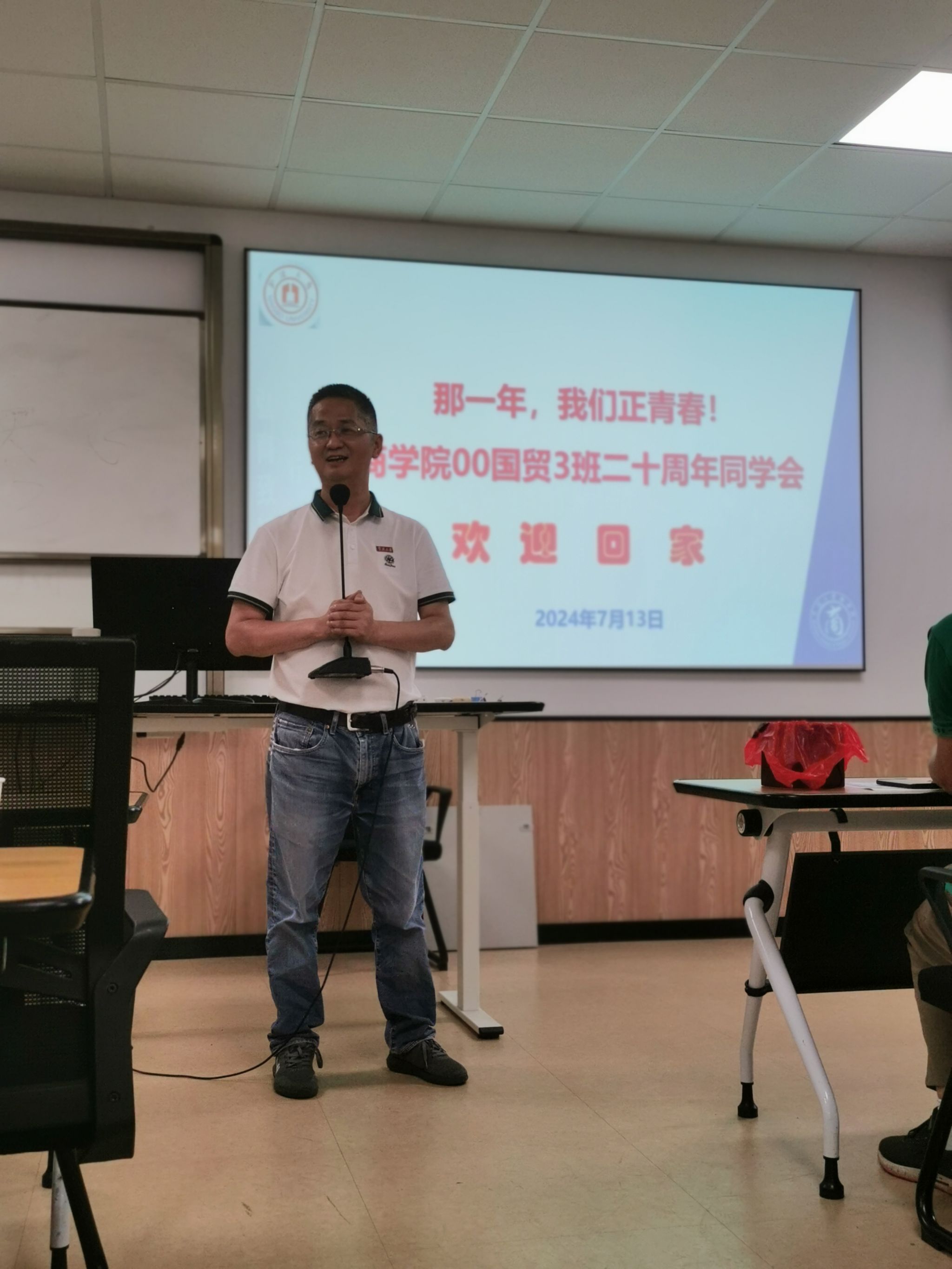7月13日下午天气闷热,但17live 大楼314会议室欢声笑语,迎来了00级国贸3班毕业二十周年的同学会。来自全国各地近40名校友带着对母校的深深眷恋、对老师同学的浓浓思念,相聚母校,回忆二十年前的青春往事。班主任朱福建老师应邀参会并主持活动。