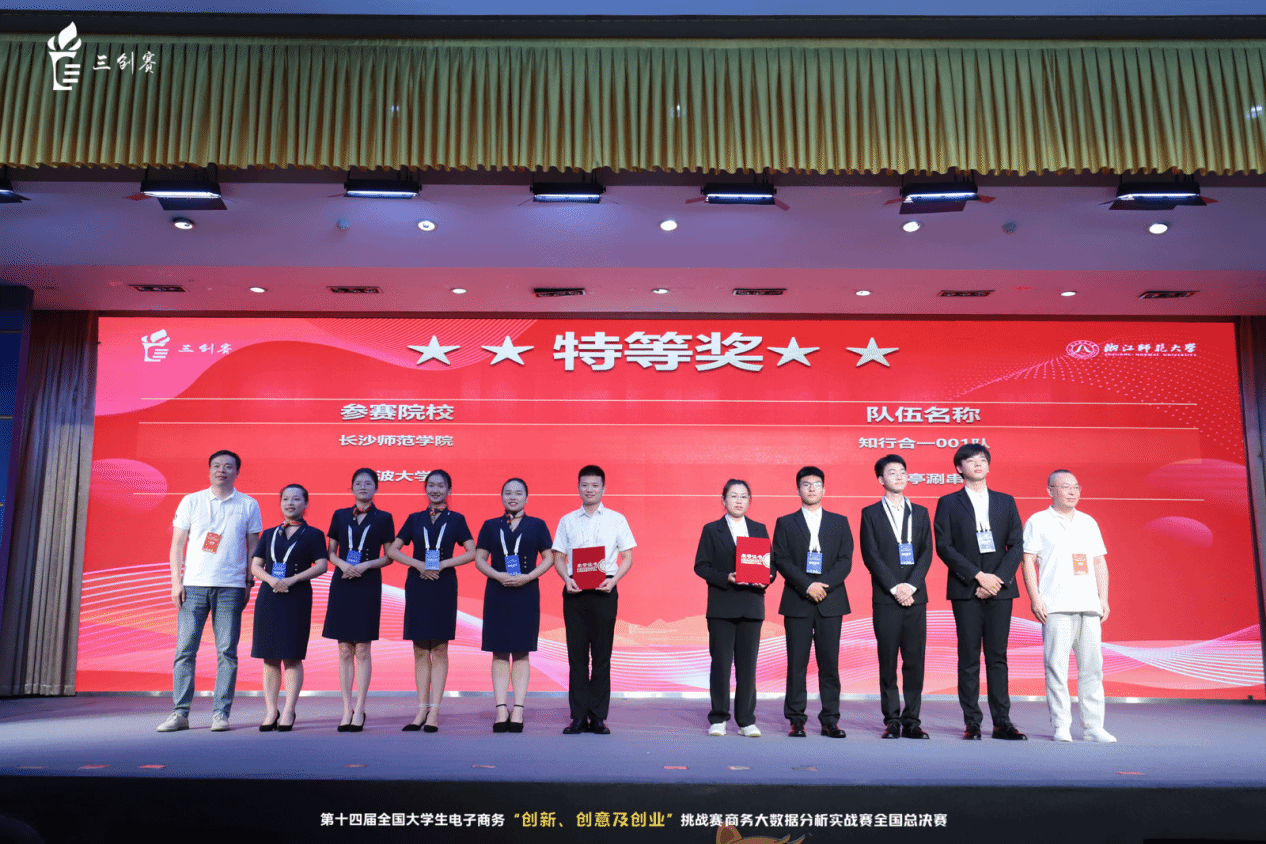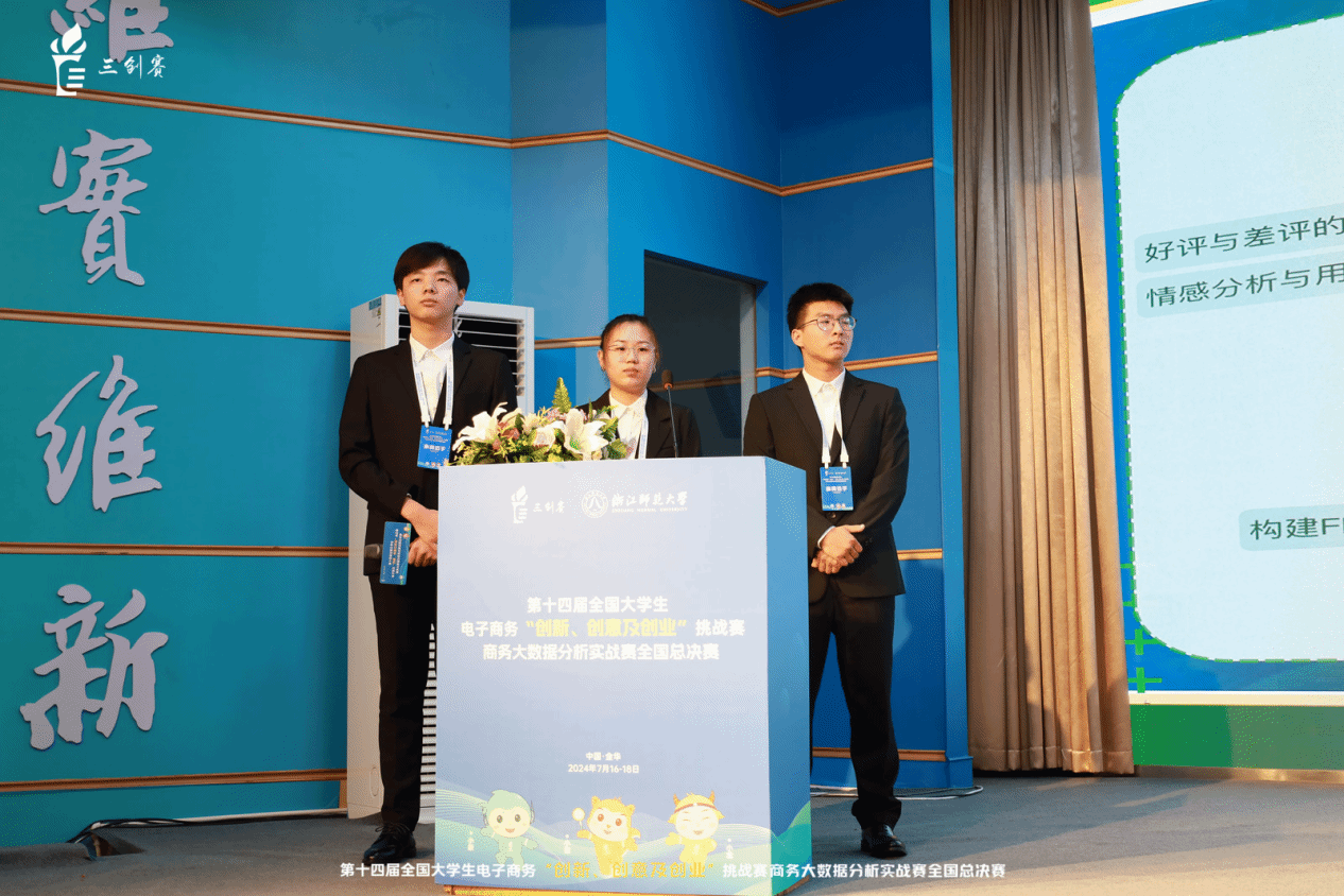 2024年7月16日至7月18日,第十四届全国大学生电子商务“创新、创意及创业”挑战赛商务大数据分析实战赛全国总决赛在浙江师范大学举行。17live 的“凉亭涮串”团队作为17live 唯一一支入围全国总决赛的队伍,经过三天的激烈角逐,由刘怡婷(队长)、邵国梁、王帅、虞川同学共同打造的“寝室皇数据分析报告”获得全国特等奖。