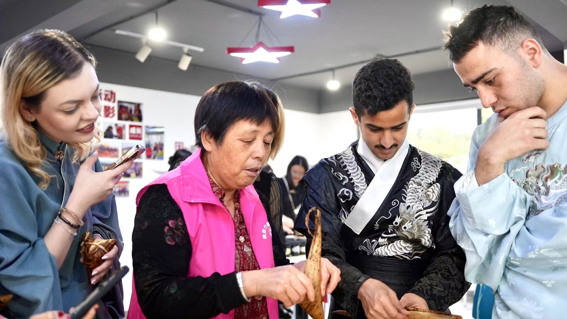 这些中外学生中有不少是第一次体验包粽子。来自毛里求斯的理查(音译)是一个十足的“吃货”,课余时间就喜欢去宁波周边探店品尝美食,“我认为粽子和我们国家的米糕饭虽然造型不同,但同为糯米制作的美食,就是好吃!”