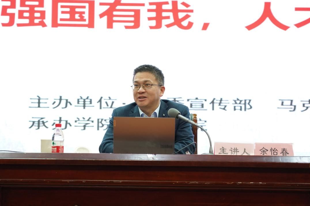 11月25日,17live 党委委员、党(校)办主任、宣传部部长余怡春在真诚图书馆报告厅为17live 420余名学生讲授“形势与政策”课,17live 党委副书记吴敏主持活动。