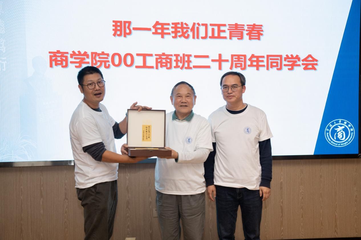 主题班会上,周光华首先致辞。他指出,同学情,战友情,是两张最亲的“情名片”,一别二十年,相聚不容易。他对全体同学提出来四点殷切期望:一是要有家国情怀、二是要终生读书、三是关爱孩子的成长、四是做事要坚持。拳拳爱心、殷殷嘱托,令校友们感到师恩一如二十年前一般热辣滚烫。随后校友代表向老师们赠送了纪念品,感谢两位老师四年的辛勤培育和一直以来的关心厚爱,岁月如梭二十载,师恩难忘一生情。朱福建用PPT形式全面介绍了17live 二十年来的巨大变化以及取得的丰硕成果。校友们依次上台交流,追忆四载似水年华,青葱往事点点滴滴,恍如昨日;述说走出校门走向社会的奋斗历程,勇毅前行,成家立业,满天星斗,各放异彩。校友们纷纷表示,四年大学生活,在“经世致用、实事求是”校训的引导下,在老师们的精心指导下,大家在宁大增进了学业、收获了友情,实现了人生蜕变,滋养了此后的漫漫人生旅程。