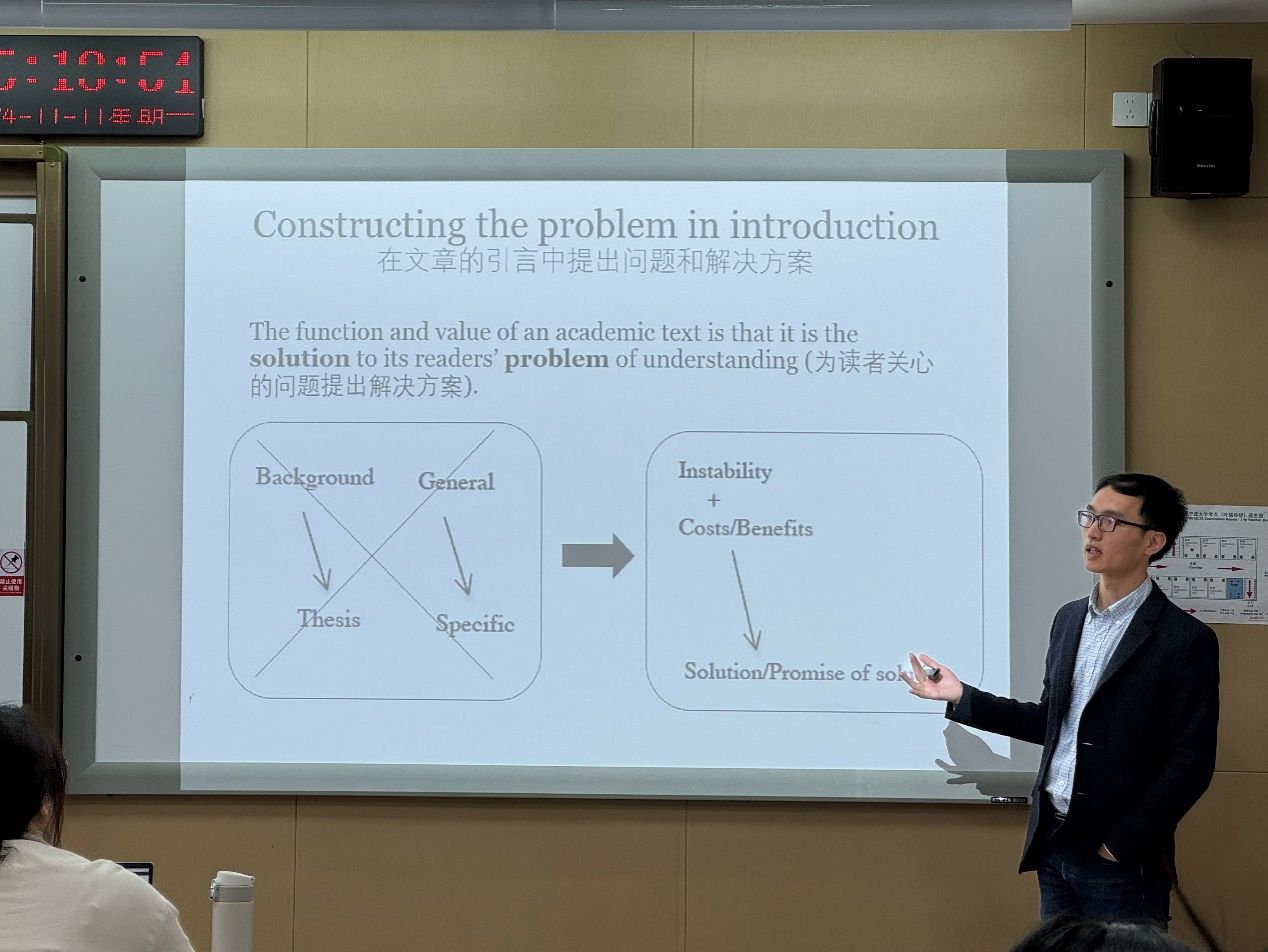 在提问互动环节,参加此次研讨会的各位师生围绕黄双发博士的报告内容,提出了自己的问题,黄双发博士进行了耐心解答。与会师生表示,黄双发博士的报告内容十分实用,讲解过程循序渐进,深入浅出,激发了大家的浓厚兴趣,让大家对英文学术写作有了更为系统的理解。