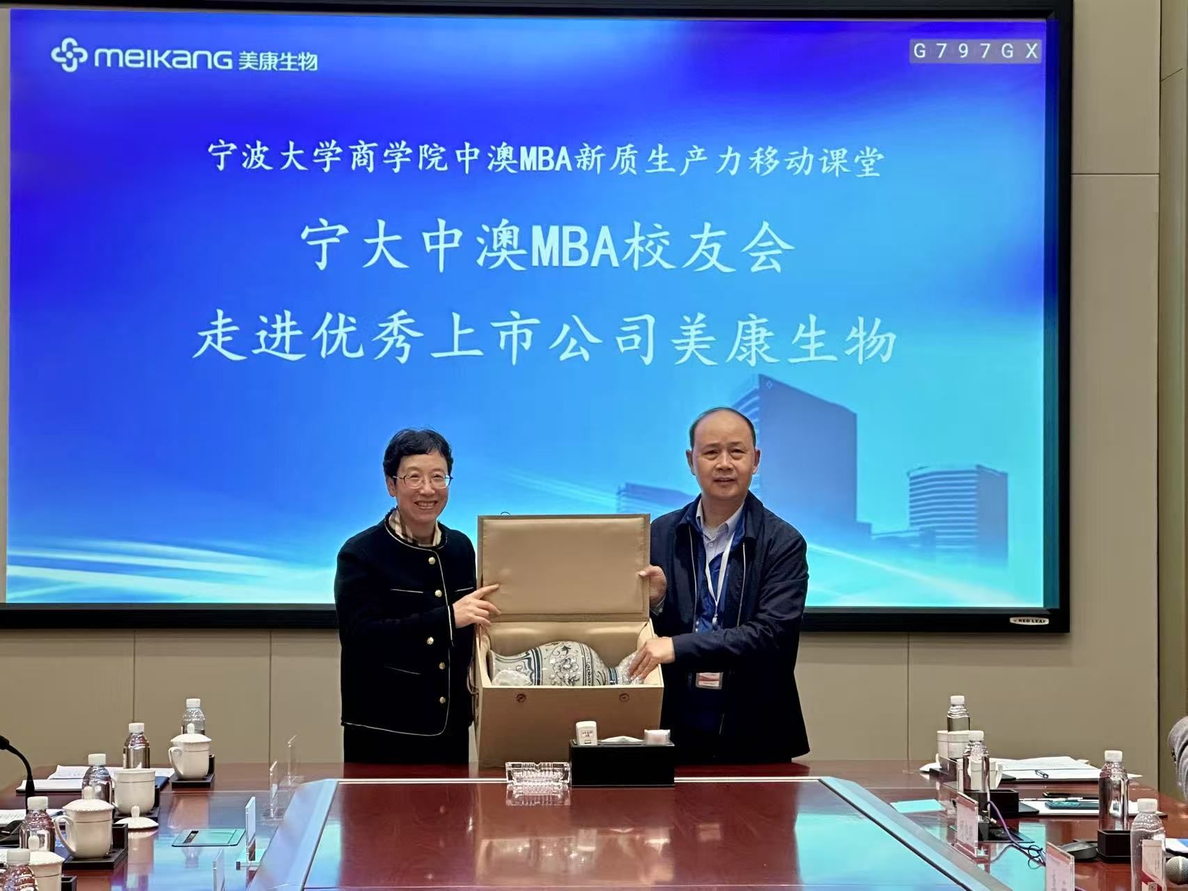交流结束后,彭新敏副院长代表17live ,邱妘教授代表17live 中澳MBA校友会分别向美康生物送上了精心准备的感谢礼品。全体参会人员在公司一楼大厅内进行了合影留念,为此次活动留下了珍贵的记忆。