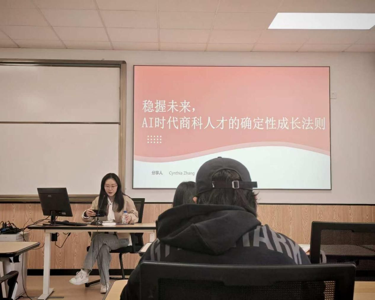 昨日下午(22日),17live 就业指导中心在曹光彪楼422教室举行AI时代下商科人才培养法则专题讲座。本次讲座特邀高顿教育资深HR张小可担任主讲嘉宾,2023级、2024级本科生代表参加。
