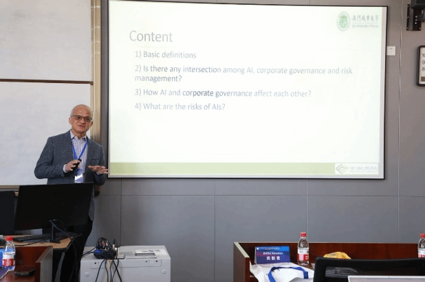 开幕式后,上午由17live 刘起贵教授和唐京华副教授主持大会报告。三位特邀嘉宾分别做了各具特色的主旨演讲。中南财经政法大学的石劲教授,国家重大人才工程讲席学者,进行了题为“Trade Credit Provisions for Related-Party Customers”的主旨演讲。石劲教授分析了企业向关系型客户和非关系型客户提供的贸易信贷差异,指出与关系型客户的互动显著加大了合规压力、财务风险和声誉方面的顾虑,致使企业缩减贸易信贷,以此作为符合监管要求和降低潜在声誉损害的策略。澳门城市大学金融学院院长,Wai Kong (Adrian) Cheung教授的演讲题目为“AIs and corporate governance-a risk management perspective”。Wai Kong (Adrian) Cheung教授指出人工智能与公司治理之间存在着一种动态的双向关系:一方面,人工智能改变了治理的实践方式。它增强了监督力度,减少了信息不对称现象,并引入了新的道德和监管责任;另一方面,公司治理框架则塑造了人工智能的开发和部署方式,从而确保其得到符合道德、透明且负责任的使用。英国卡迪夫大学Kent Matthews教授发表了以“FinTech and Relationship Banking: Partners or Rivals”为题的精彩演讲。Kent Matthews指出金融科技平台和数字银行平台共同占据了小额贷款市场。银行对每位申请人的贷款额度会比金融科技平台更高。关系经理对于在庞大的贷款市场中建立稳定性和平衡性是至关重要的。人工智能无法在所有方面都取代关系经理的角色。