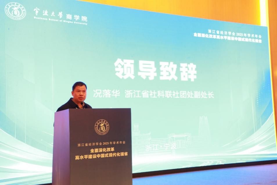 况落华在致辞中充分肯定了浙江省经济学会在推动学术交流、培育青年学者方面发挥的重要作用。他指出,学会长期以来坚持服务大局、服务学术、服务人才的宗旨,在组织高水平论坛、促进理论创新、加强青年人才培养等方面取得了显著成效。