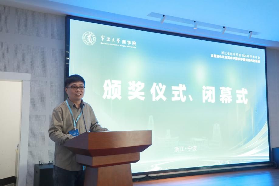 图20 浙江省经济学会秘书长叶兵主持颁奖仪式、闭幕式