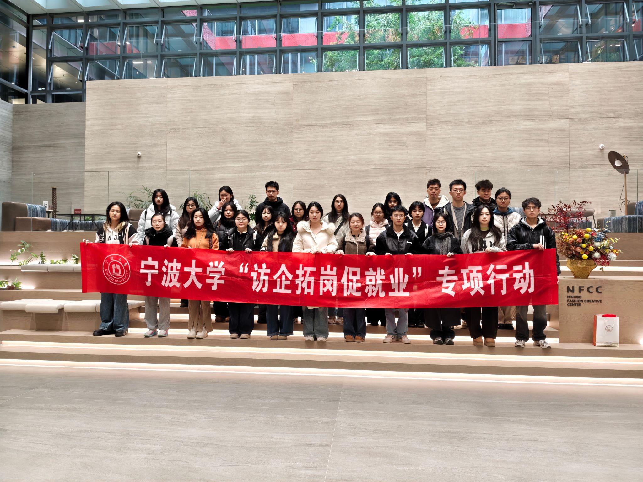 上午,师生一行抵达宁波博洋控股集团(NFCC宁波时尚创意中心)。在企业工作人员的带领下,大家参观了宁波博洋大楼的各项功能区域,深入了解博洋集团的发展历史、业务布局及品牌创新战略。