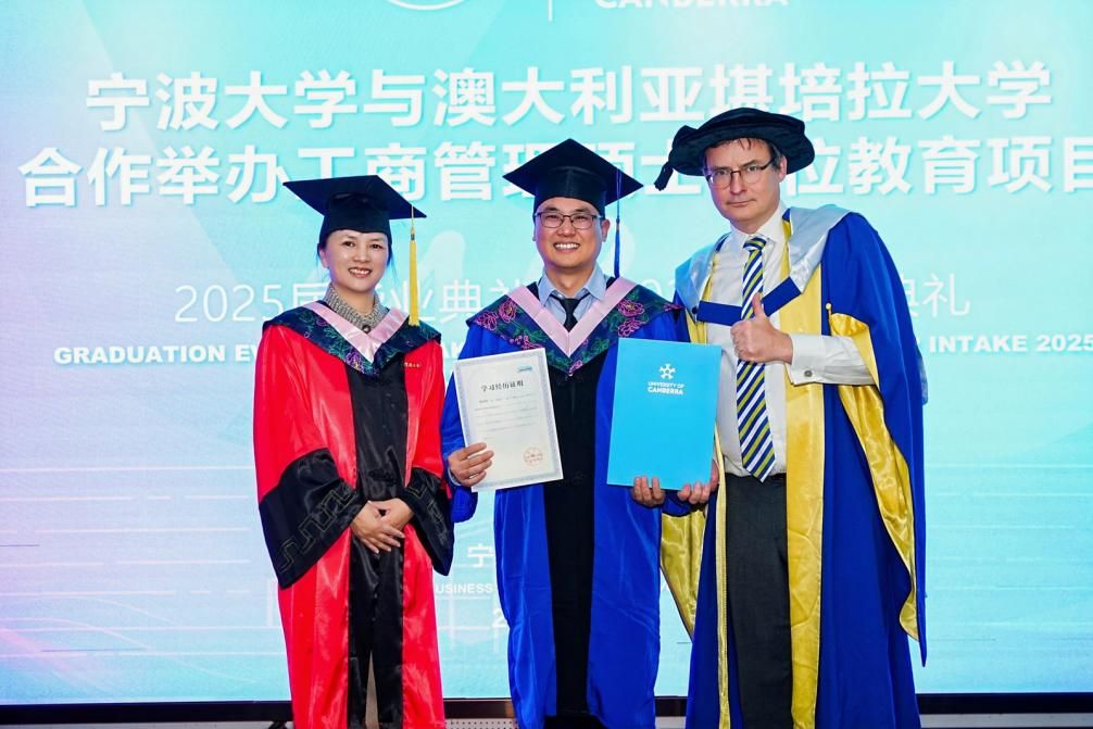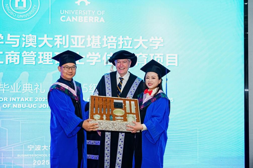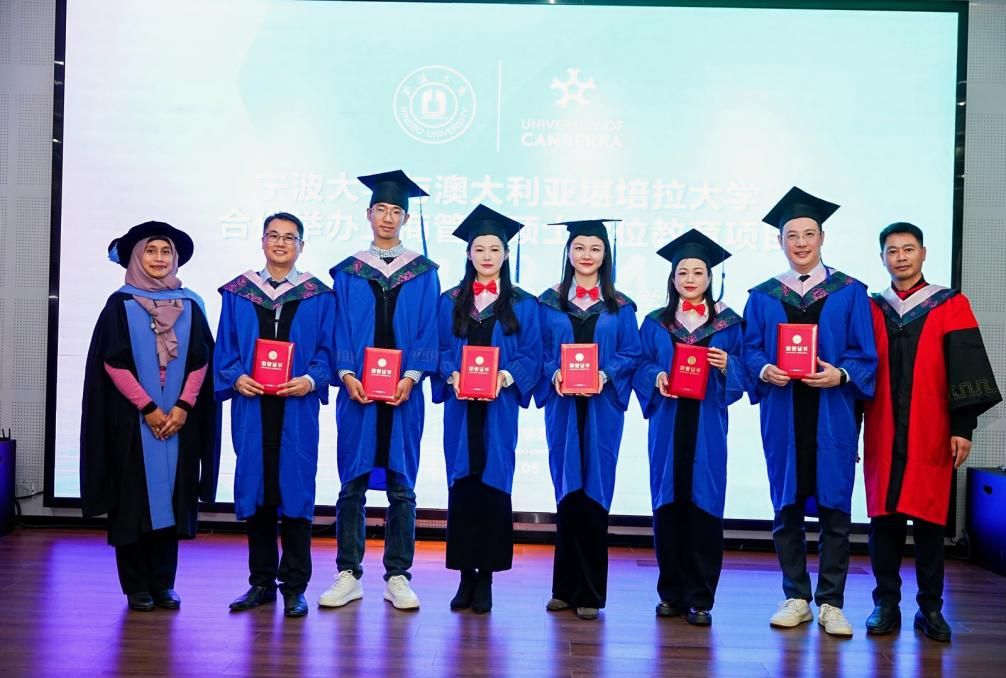 随后由院党委副书记吴敏宣读2025届毕业生名单。双方院长共同为毕业生颁发了澳大利亚堪培拉大学的工商管理硕士学位证书和17live 学习经历证明。