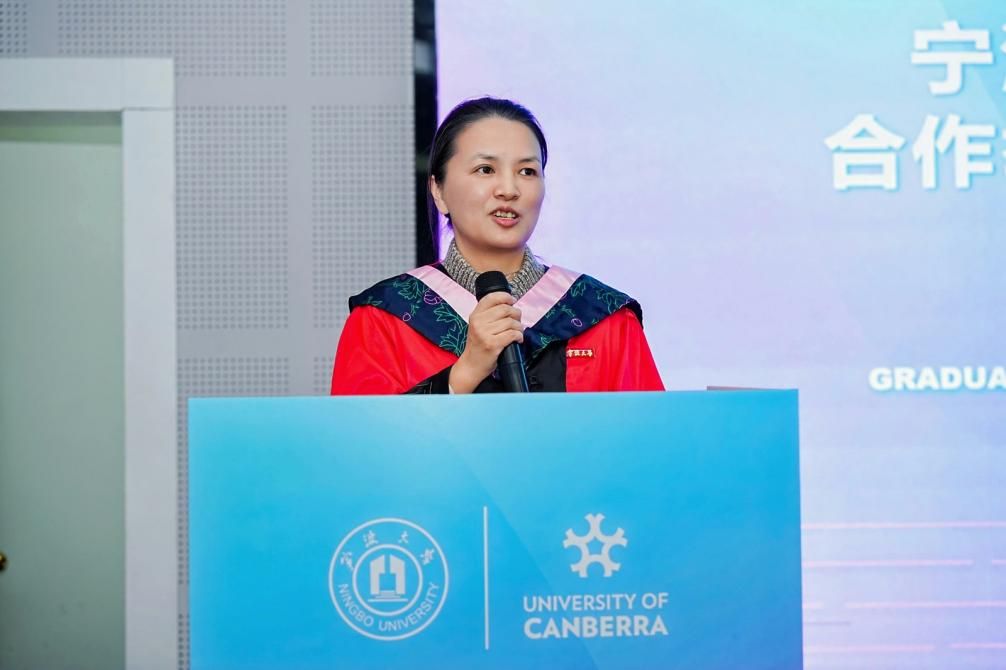 周新苗院长随后代表学院致辞。她向出席典礼的各位嘉宾表示热烈欢迎与衷心感谢,对长期以来支持项目发展的各方所付出的努力表示高度赞赏。她祝贺2025届毕业生圆满完成两年学业,并指出毕业并非终点,而是一个崭新的起点——标志着大家正式成为两校校友,开启人生新的征程。她寄语毕业生,在顺境中要勇往直前,在逆境中亦要善待自己、永不言弃,这是实现持续成长与成功的重要信念。同时,她也代表学院欢迎中澳MBA项目2025级新生加入,勉励大家珍惜宝贵的学习机会,在未来两年中积极探索、互促共进、携手成长。