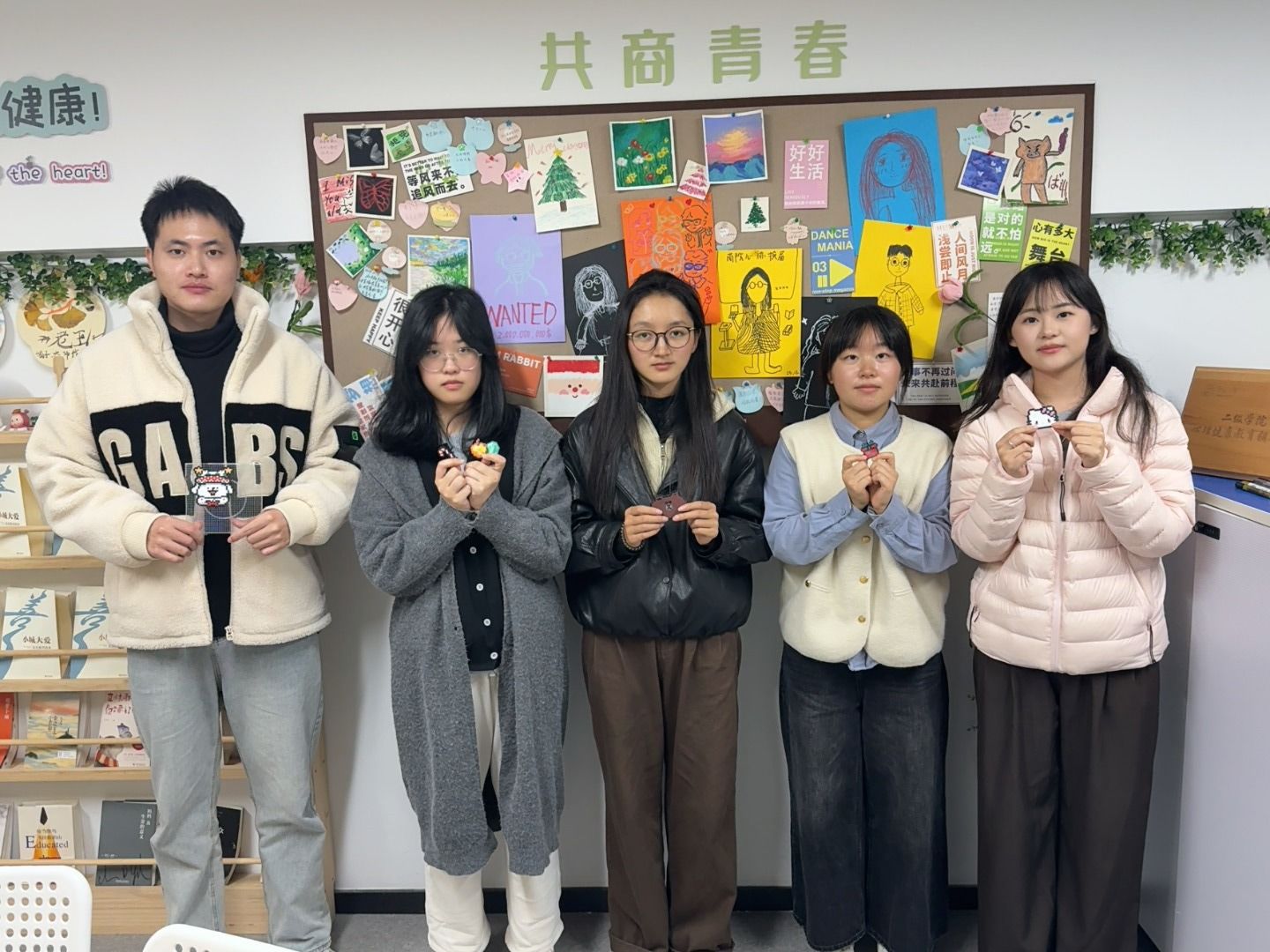 活动全程氛围温馨治愈,现场持续播放轻柔纯音乐,帮助学子们放松身心、专注当下。活动收尾时,工作人员为每位参与者送上迷你拼豆材料包、热可可饮品等暖心小礼品。