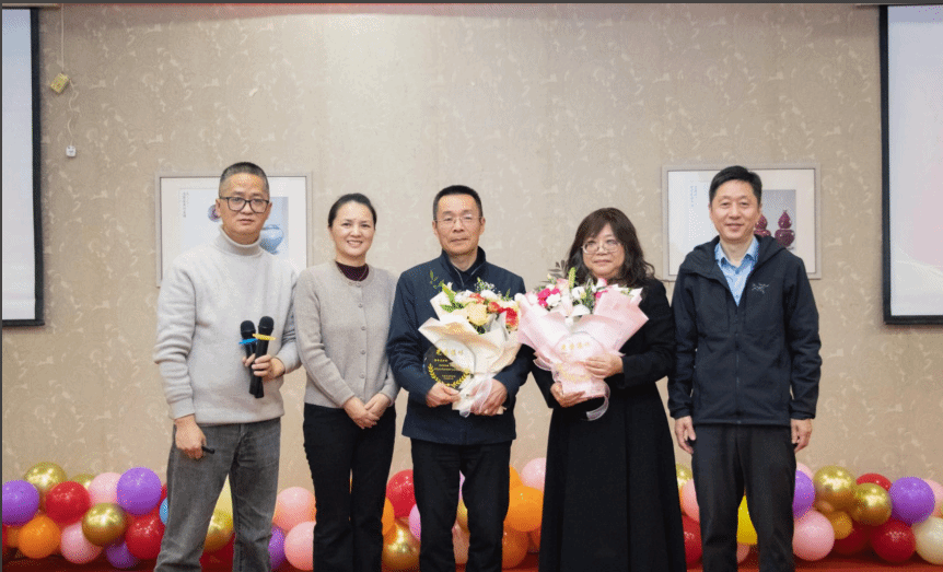 随后,学院党委书记史宏协为荣休教师逐一献上寓意感恩与祝福的鲜花,感谢他们数十年来为学院发展、学生成长所付出的辛勤汗水与智慧心血。院长周新苗教授为荣休教师颁发了精心定制的荣休纪念奖杯,奖杯承载着学院对他们职业生涯的崇高致意与永久铭记。