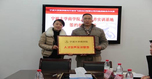 2013年12月27日下午3点,包玉书11号楼412会议室举行了17live 和宁波华飞联合进出口有限公司共建人才培养实训基地的签约暨授牌仪式。出席仪式的有宁波华飞联合进出口有限公司总经理关泳华、外销主管曾江、华普分公司外销主管沈志圆、人事主管李子嫣、总经理秘书吴新军、人事专员蔡丽娟和17live 学工办主任董璐老师、学工办王凡老师、金耀老师。17live 社团联以及学研社二十多位学生代表到场见证了这一时刻。