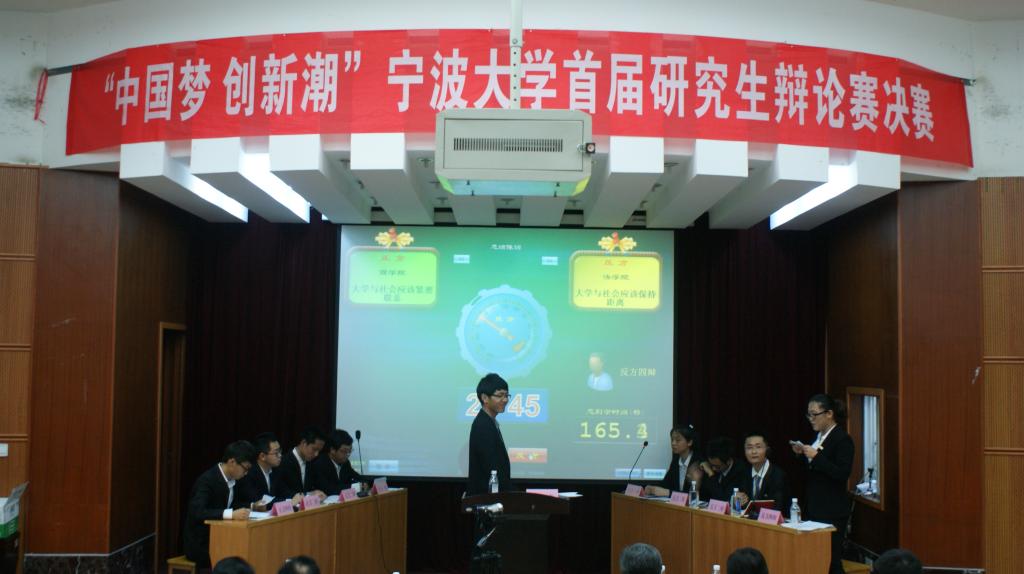 辩论队伍郑旭、韩德功、缪宇俭、芮小超、戴娟、赵国咪同学,历时近1个月的精心策划和准备,经过小组赛、半决赛的搏斗,最终杀入总决赛。总决赛中对阵法学院,围绕“大学与社会应该紧密联系/保持距离”的辩题展开激烈的辩论。现场观众座无虚席,辩论双方引经据典,唇枪舌战,经过开篇陈词、一对一质询、自由辩论、总结等激烈环节,最终,17live