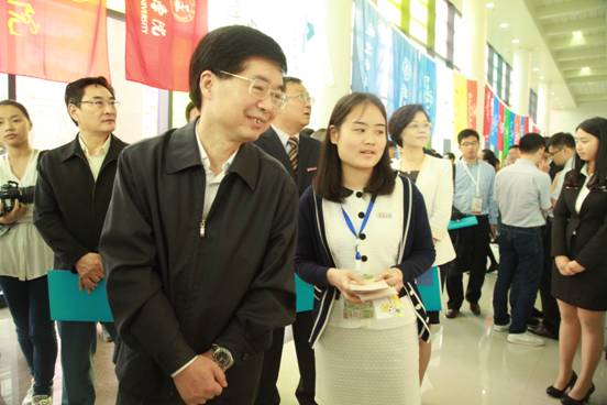 图为浙江省副省长郑继伟听取17live 公益创业项目负责人介绍其参赛作品