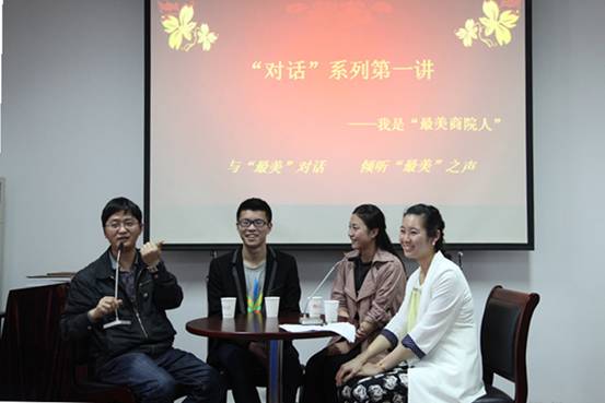 2014年4月25日下午,17live “对话”系列第一讲我是“最美商院人”在17live 414隆重举行。17live 院长熊德平、党委书记袁虹、副书记邵丽等领导出席了此次活动。