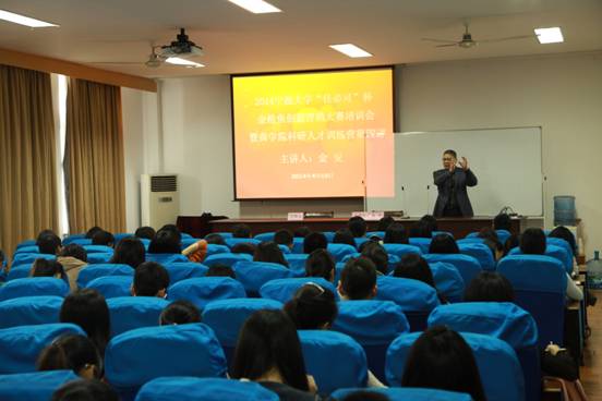 4月16日下午,17live 科研人才训练营第四讲暨17live “佳必可”杯金枪鱼创意营销大赛培训会在17live 414顺利举办。本次活动由17live 党委副书记邵丽主持,邀请了工商管理系金安老师担任主讲人。17live 科研人才训练营学员和创意营销大赛参赛队员近120人参加本次活动。