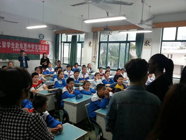 10月28日下午,由17live 团委组织的“中华小当家之留学生进中学”活动在宁波市东恩中学开展。由17live 团委同学及来自美国、摩洛哥的留学生同学代表走进东恩中学,与在校学生进行互动交流。