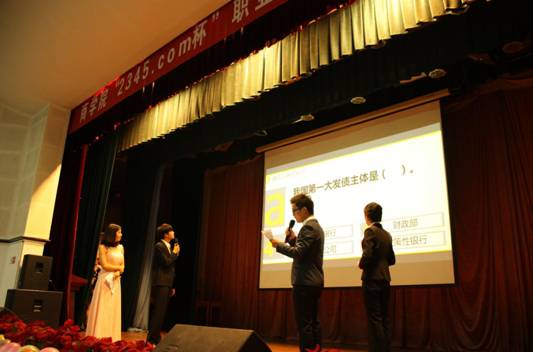 当晚的决赛分为四个环节,环环都有精彩看点。在第一个环节“少年自有少年狂”中,选手们精彩的自我介绍,详实的职业规划使得现场掌声不断,丰富的经历和精确的定位让每一位观众为之倾服!第二个环节“藐昆仑来笑吕梁”,选手之间的唇枪舌剑,外景拍摄的活力跑男,让选手在成长的同时也使得现场笑声不断!在第三个环节“雏鹰羽丰初翱翔”中,面对专业的知识问答题和现场的情景模拟,选手们机智的应答和诙谐的语言让每一位观众都记住了他们!第四个环节“凤栖苍梧凤求凰”,评委嘉宾对选手的表现进行点评,并向心仪的选手发出了本企业实习的邀请函!最终,13国贸1班的吕政远获得冠军,12会计1班的沈宁获得亚军及最佳人气奖,12国贸1班的刘惠敏获得季军,六位选手荣获了“商界未来精英”的荣誉称号。