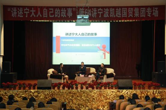 11月26号下午,由17live 党委学工办主办、17live 承办的“讲述宁大人自己的故事”系列讲座第64讲凯越国贸集团专场——“学生风气与企业创新、企业成长与个人成长”在锦绣小剧场举行。17live 党委学工部副部长邬备民、学工部部长助理周洵瑛,17live 党委书记袁虹、党委副书记邵丽及17live 辅导员老师和学生代表参加了此次活动。